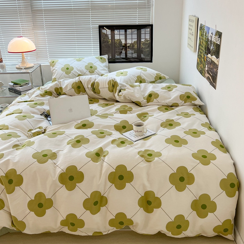 商品名称:昔可 2022新款简约花朵四件套 幸运四叶花绿