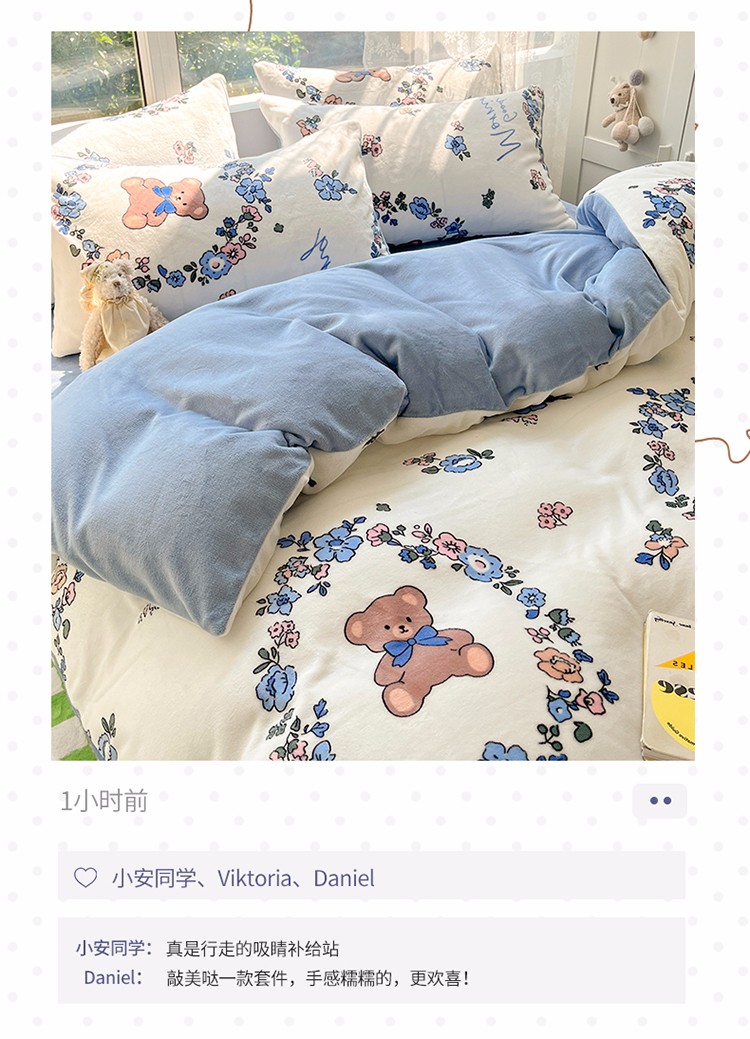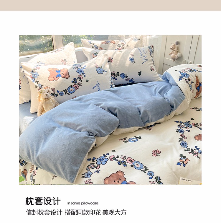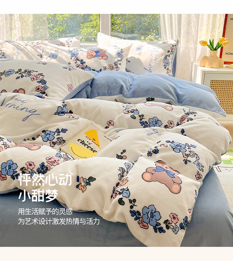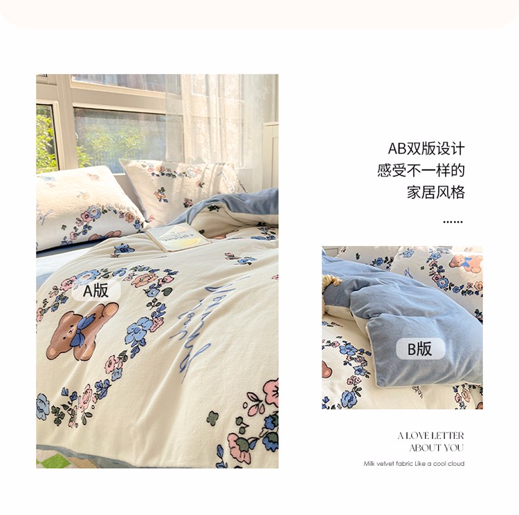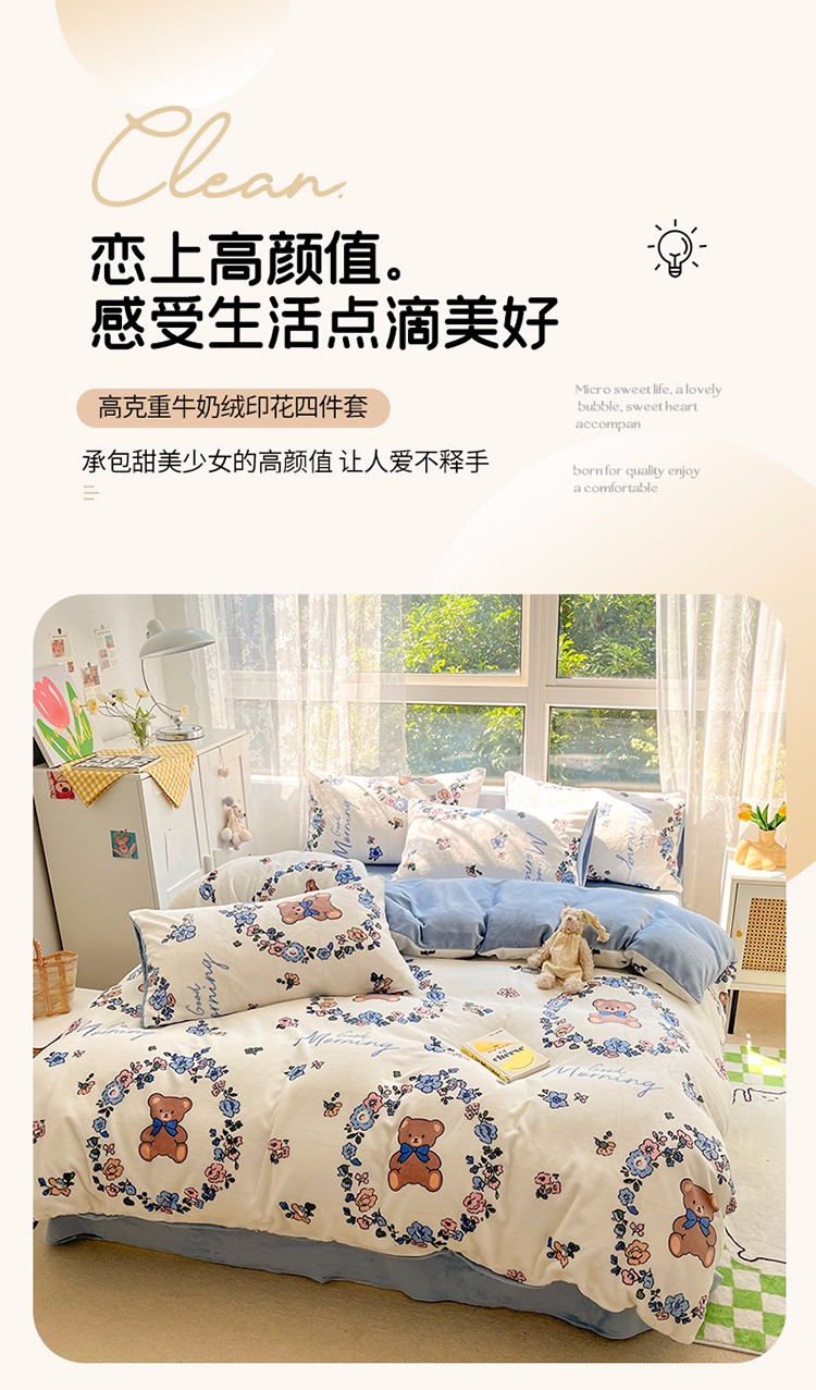 商品名称:雅居纺 2022新款牛奶绒印花四件套 甜蜜的爱