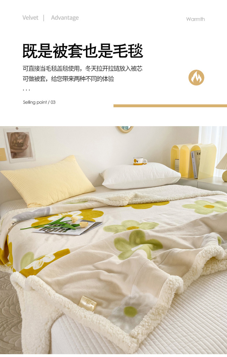 商品名称:寐居 2022新款牛奶绒羊羔绒被套两用多功能盖毯 浪漫情调
