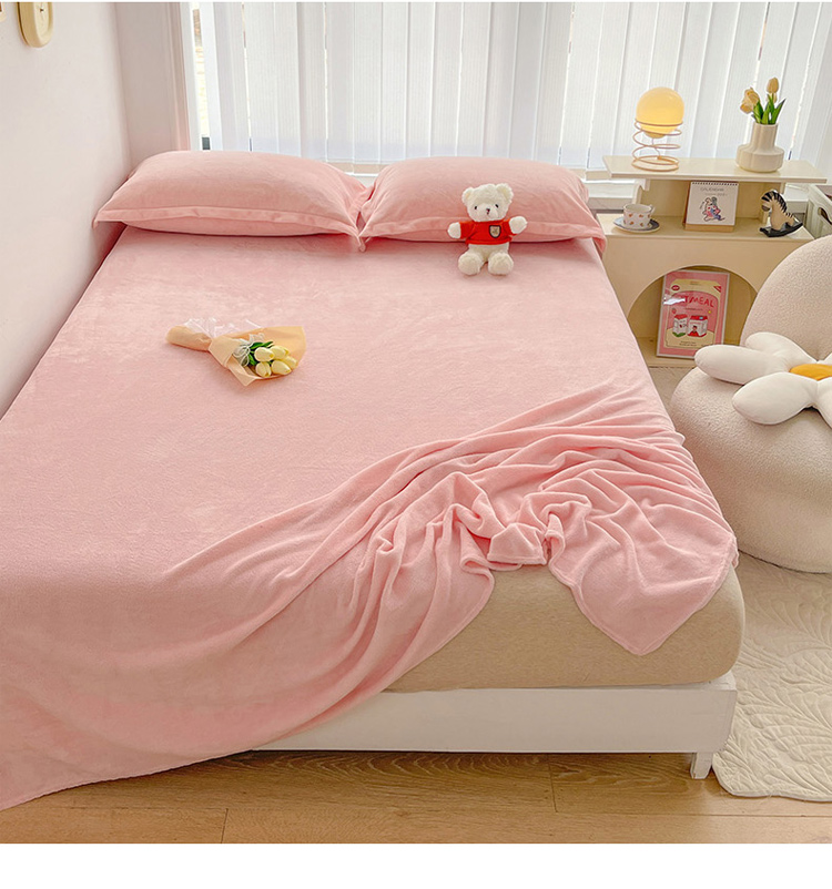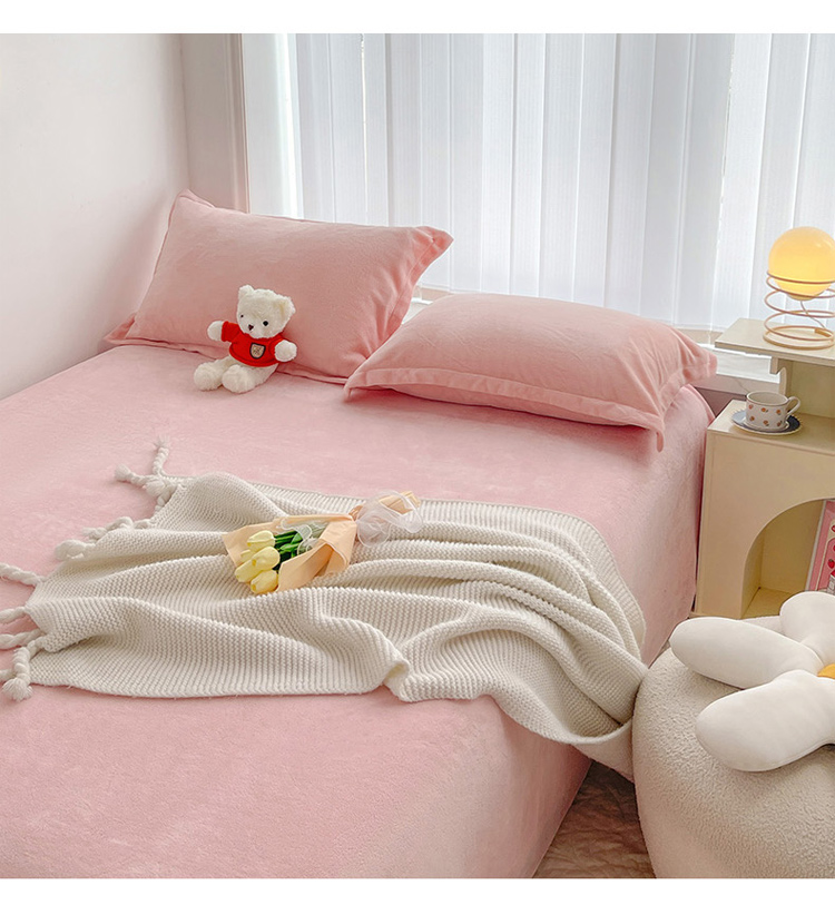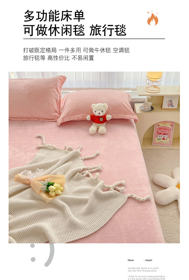 寐居 2022新款牛奶绒保暖单品床单床笠 少女粉