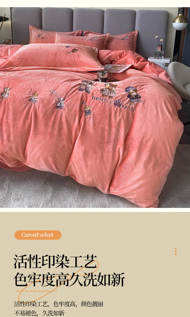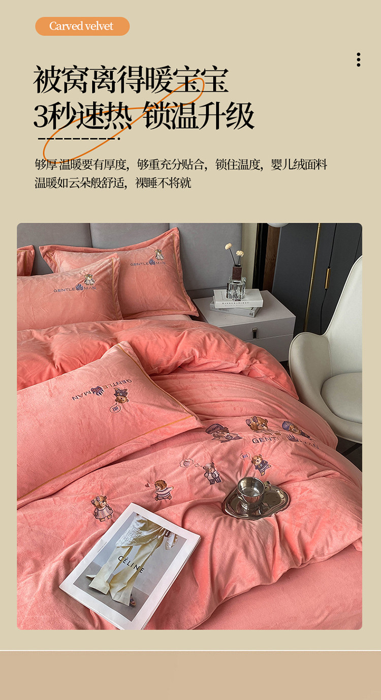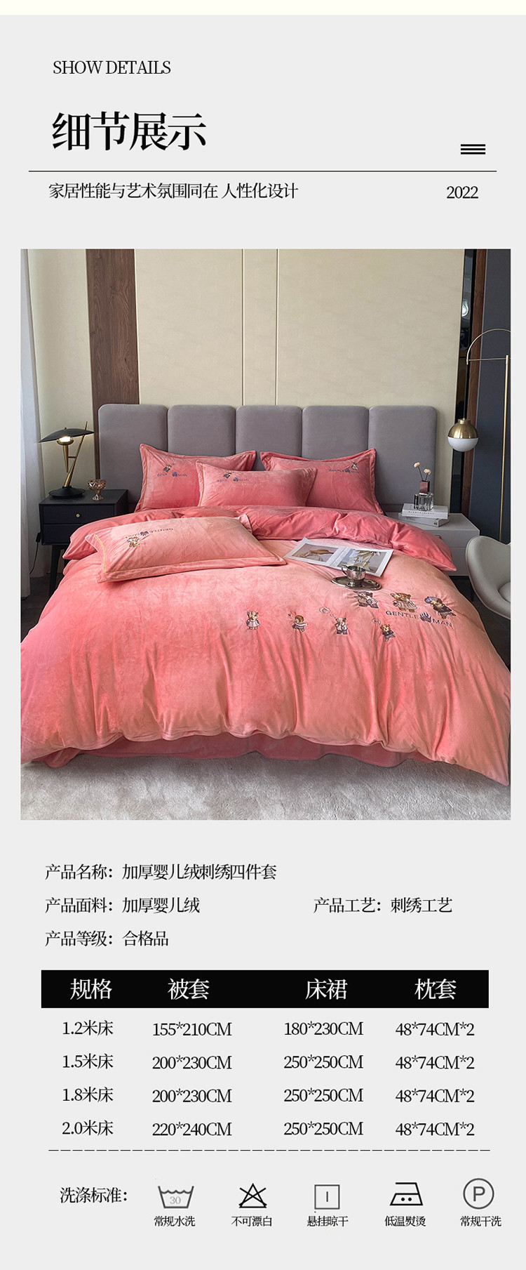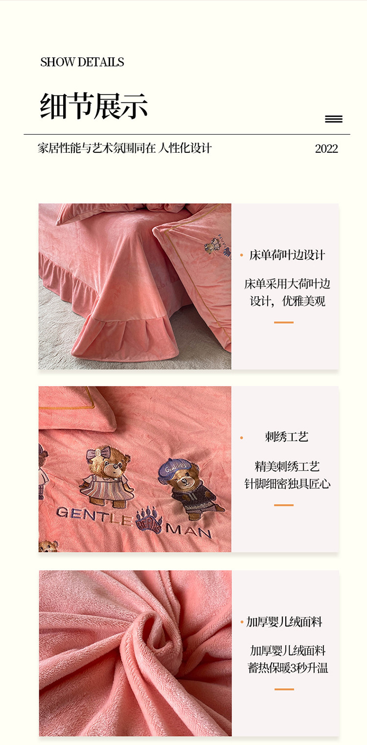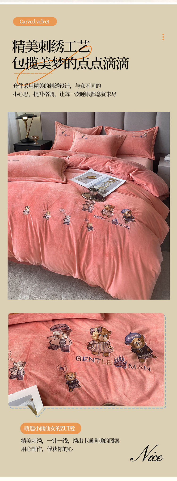 商品名称:云锦 2022秋冬新品加厚婴儿绒刺绣四件套 可爱熊-玉藕色