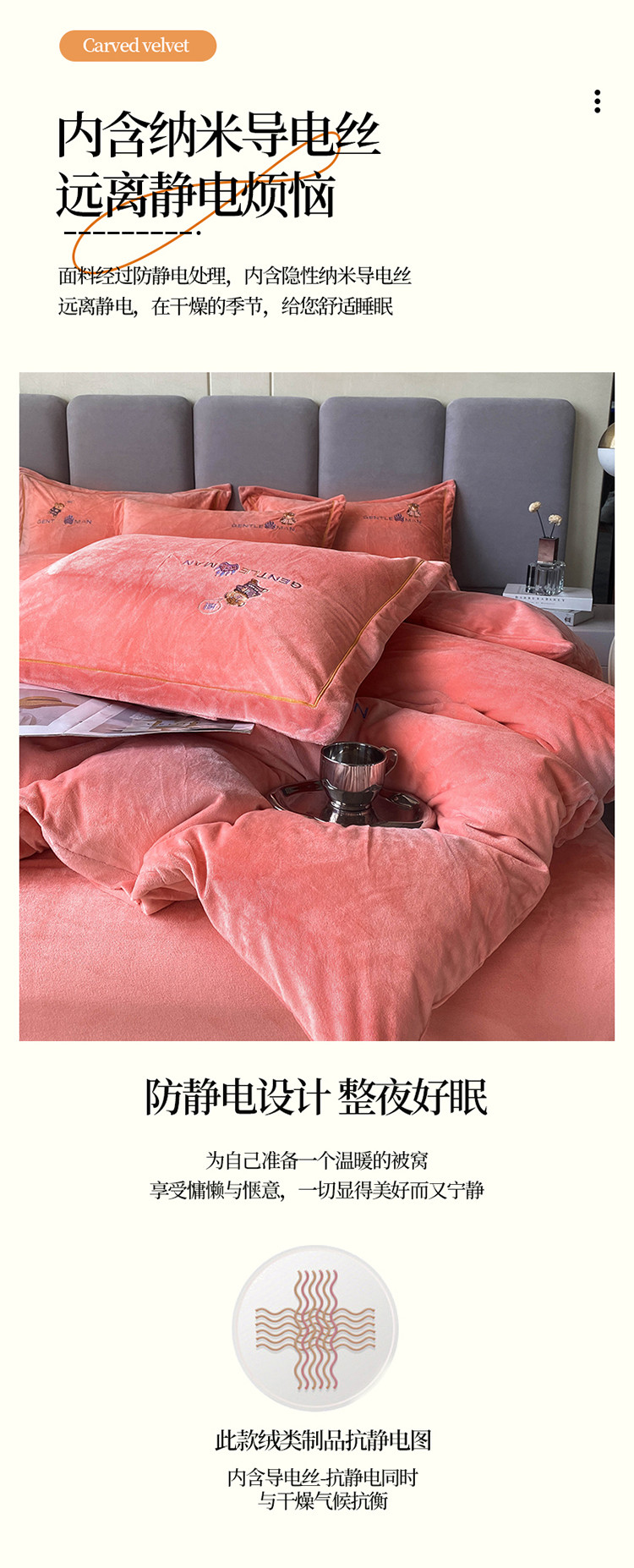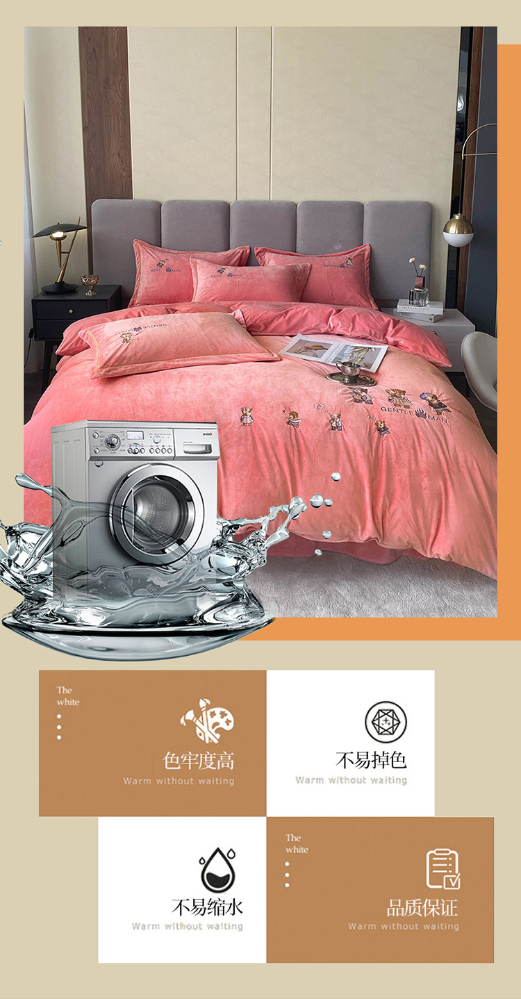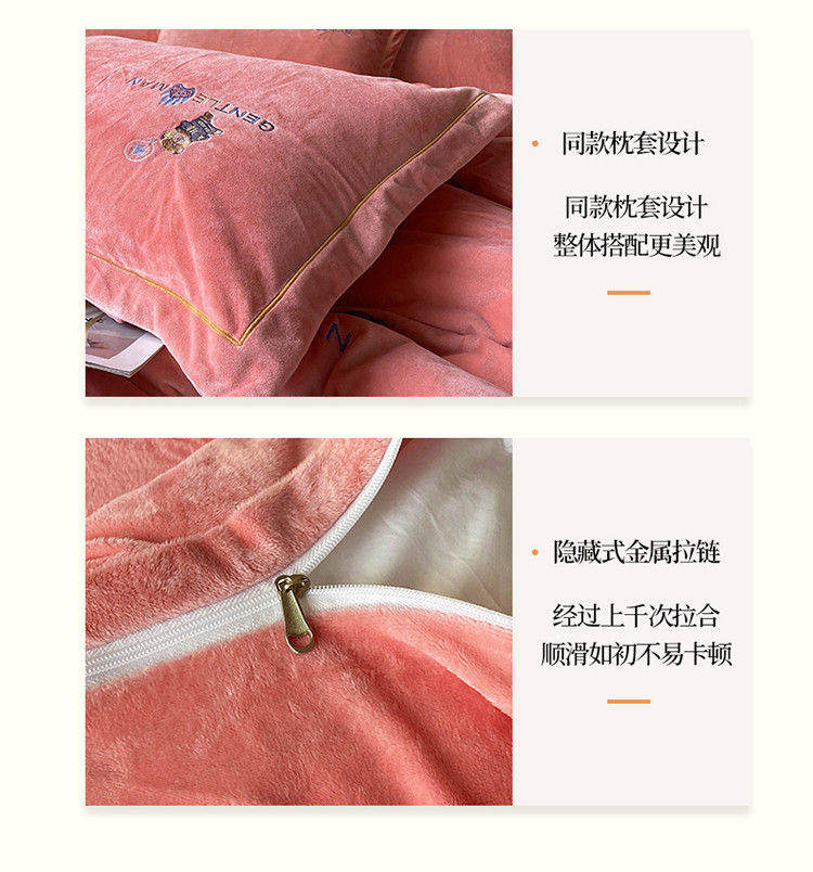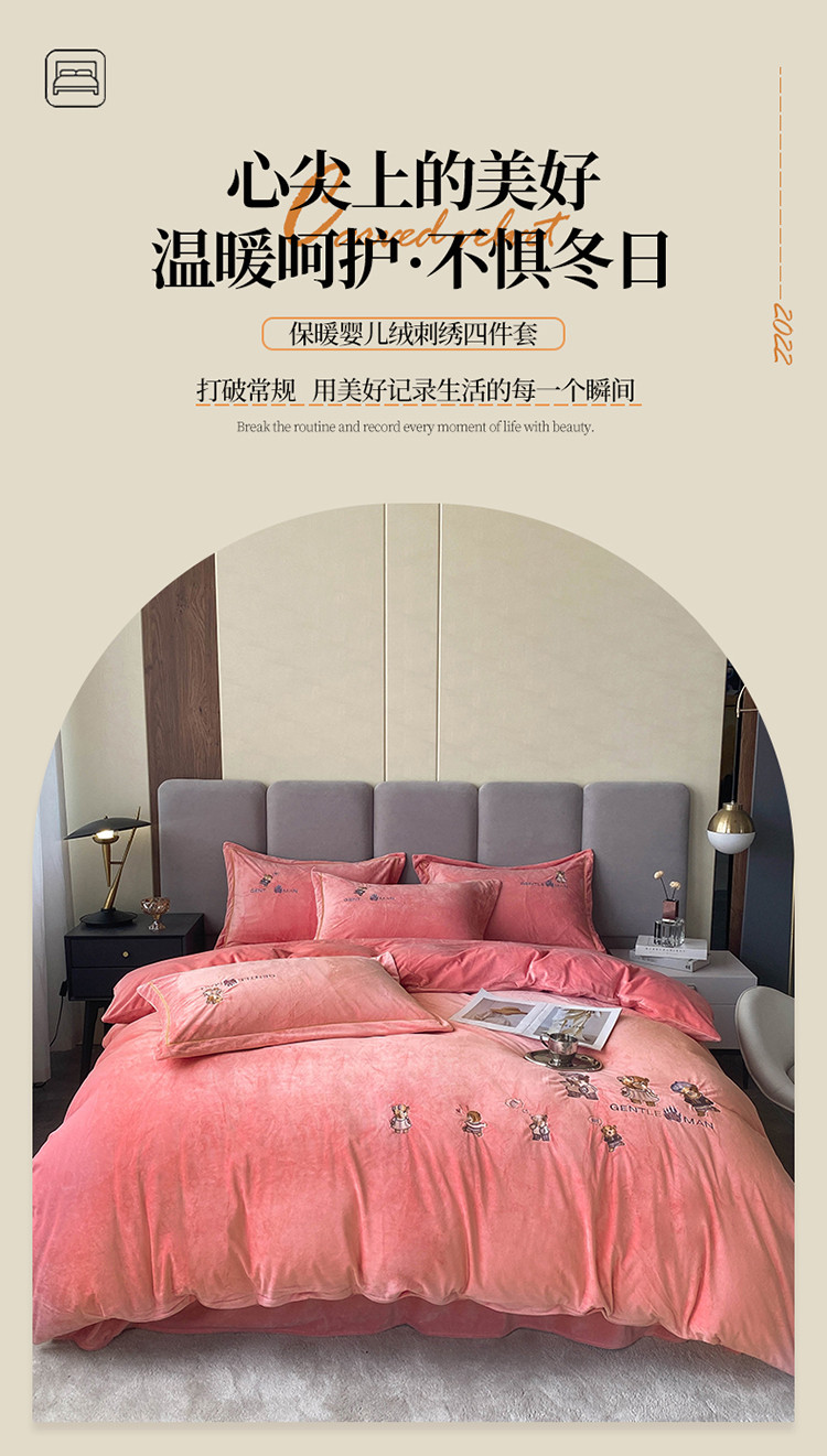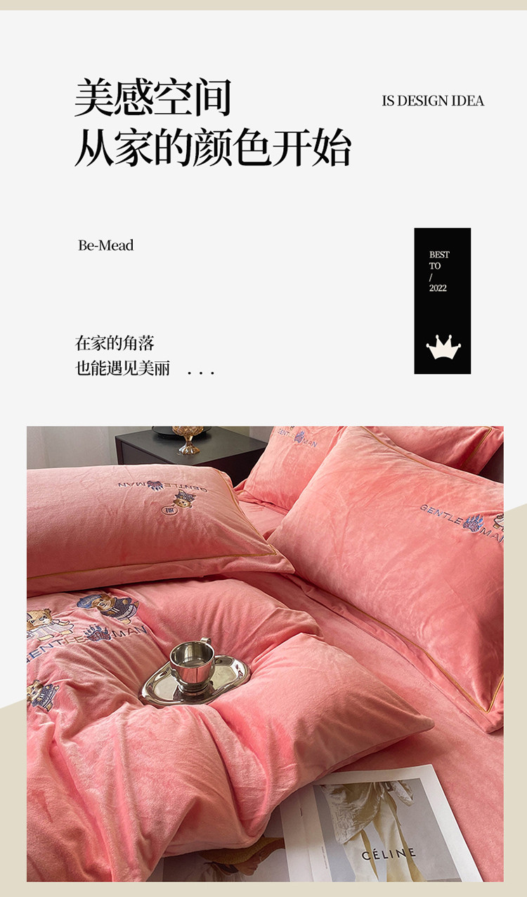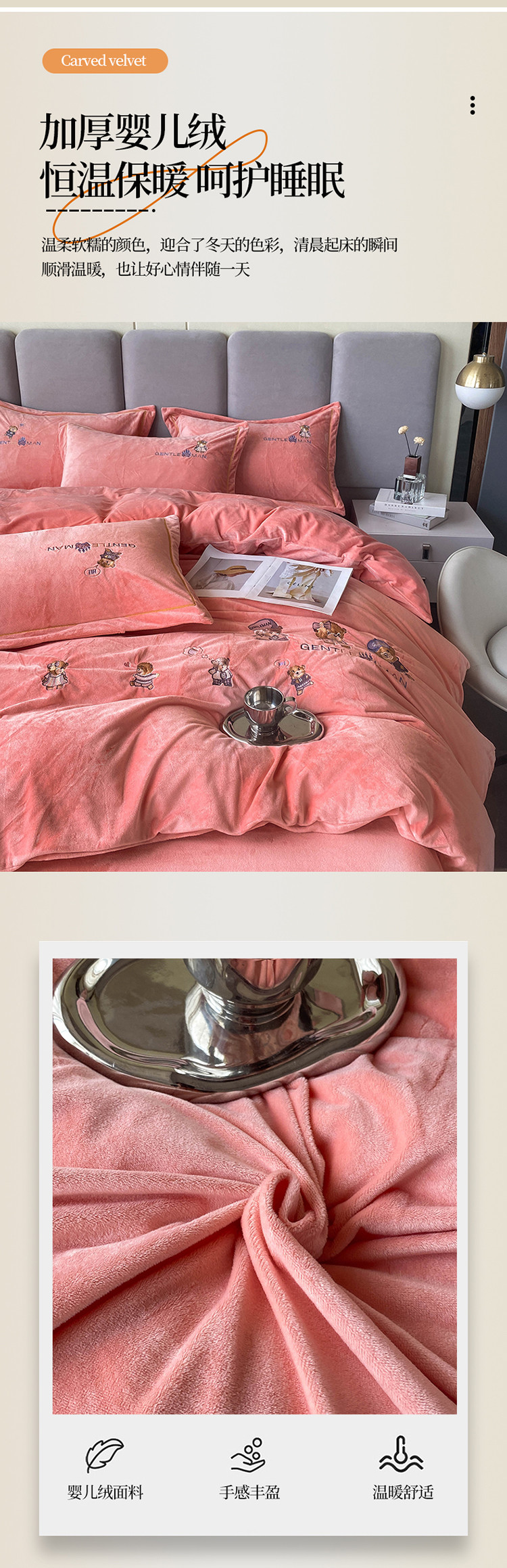 商品名称:云锦 2022秋冬新品加厚婴儿绒刺绣四件套 可爱熊-玉藕色