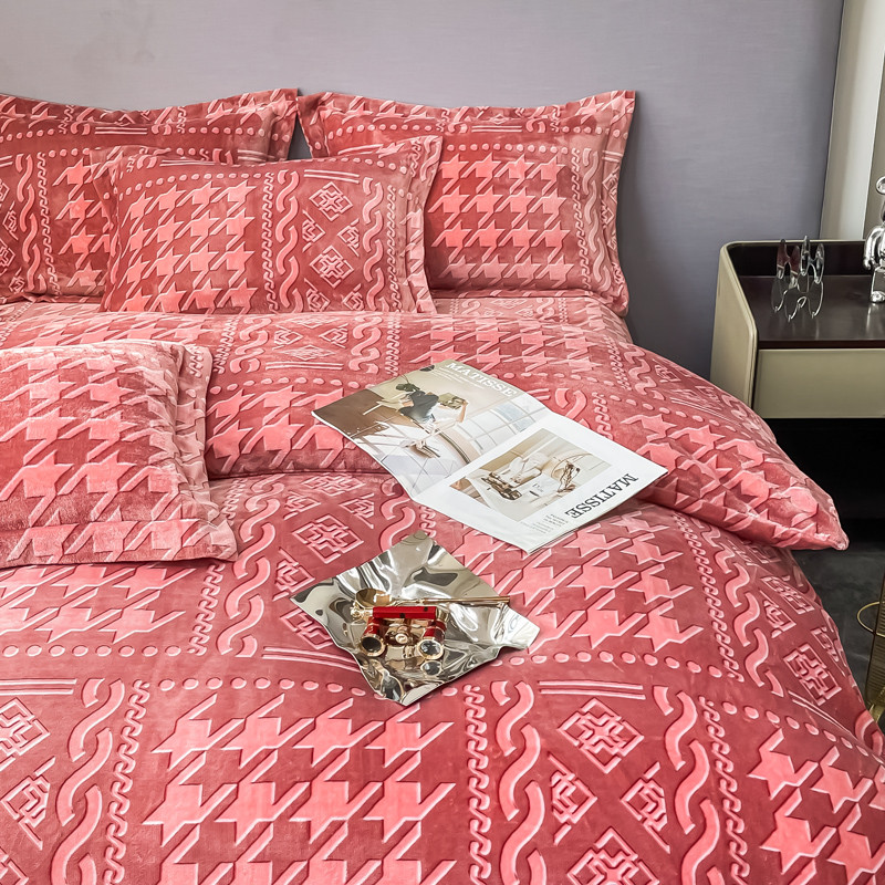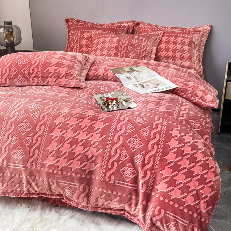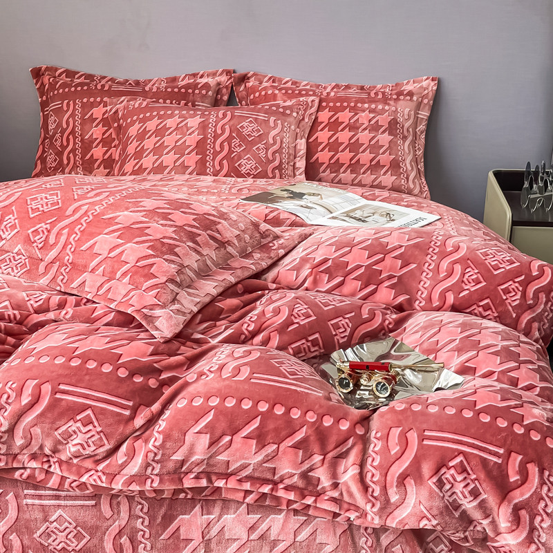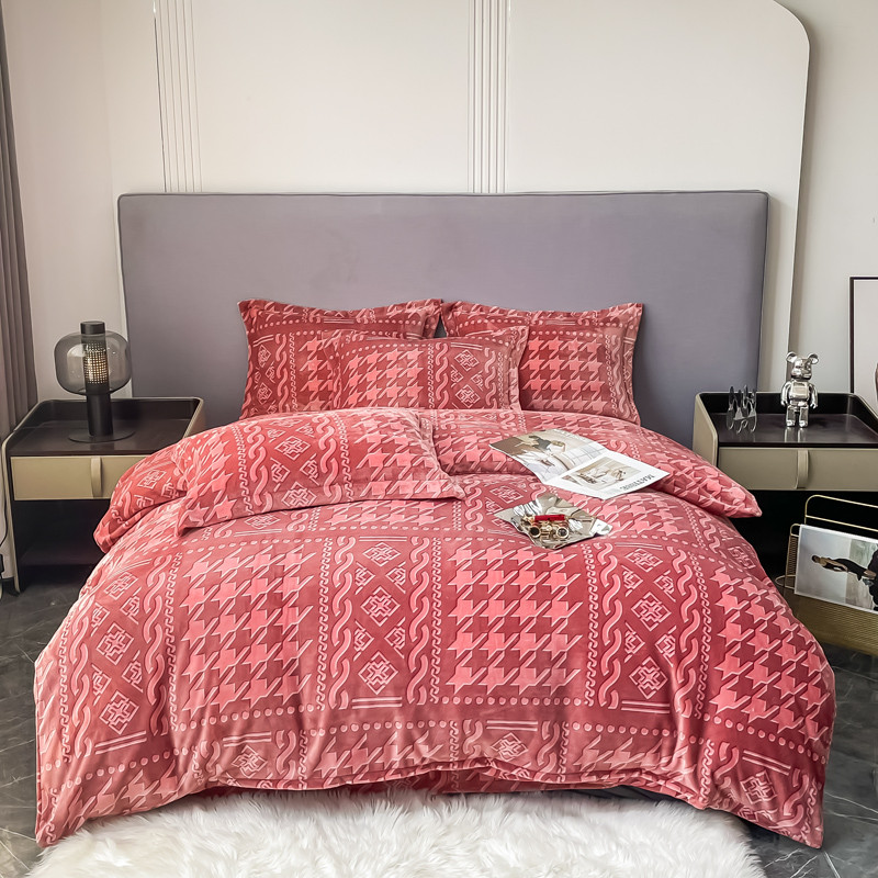商品名称:首选2022新款艾尔顿绒四件套 艾尔顿-酒红