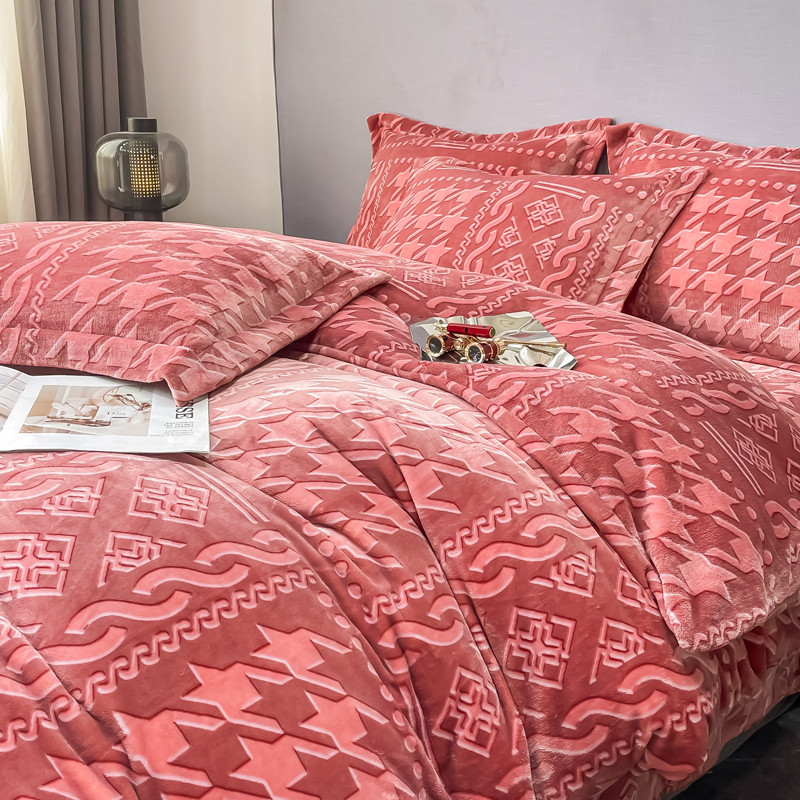 (总)首选家纺 2024新款A类立体雕花绒牛奶绒婴儿绒四件套,蝶影,花语悠然,玫瑰粉,玫瑰桔,玫瑰绿,千叶-粉,千叶-咖,水墨花-绿,水墨画-粉,水墨江南,素色主义,繁花似锦,花间风铃,欧式情怀,纤羽