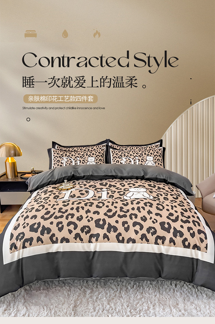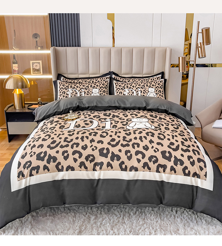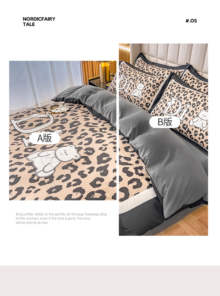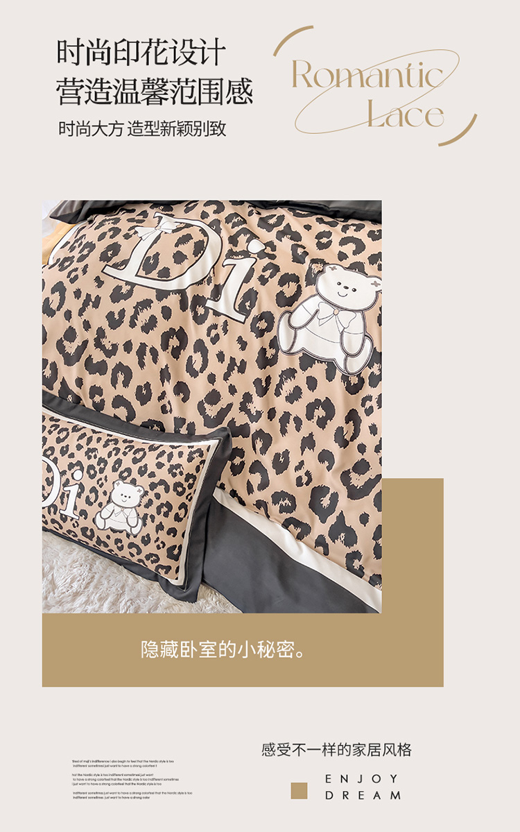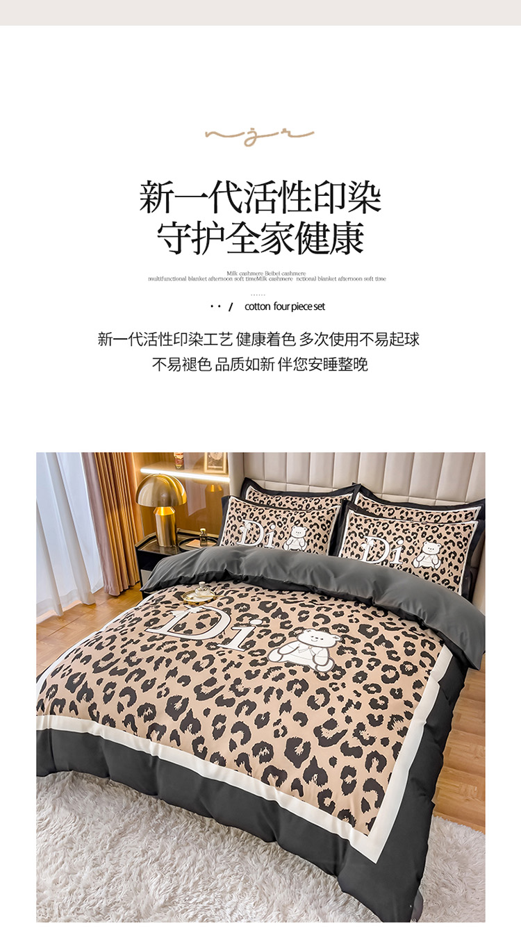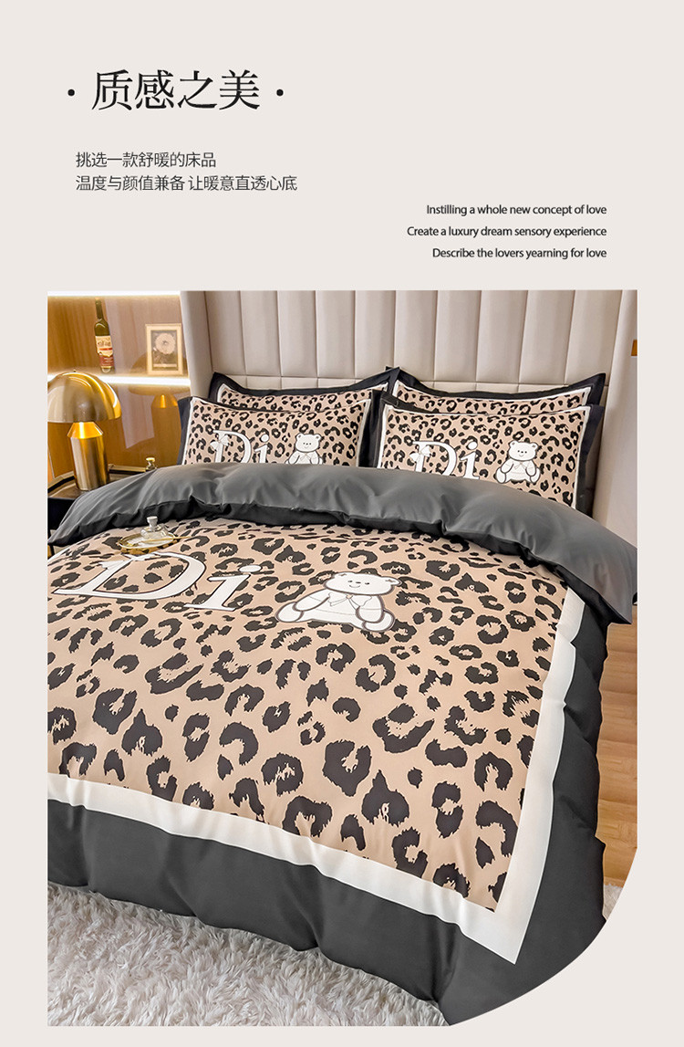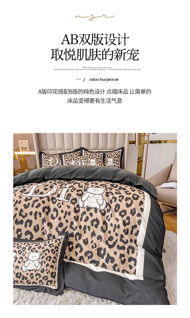 娜娜 2022新款大版大牌风亲肤棉工艺款四件套 豹纹熊