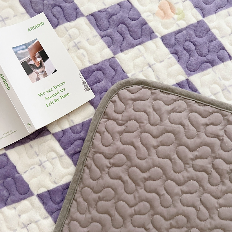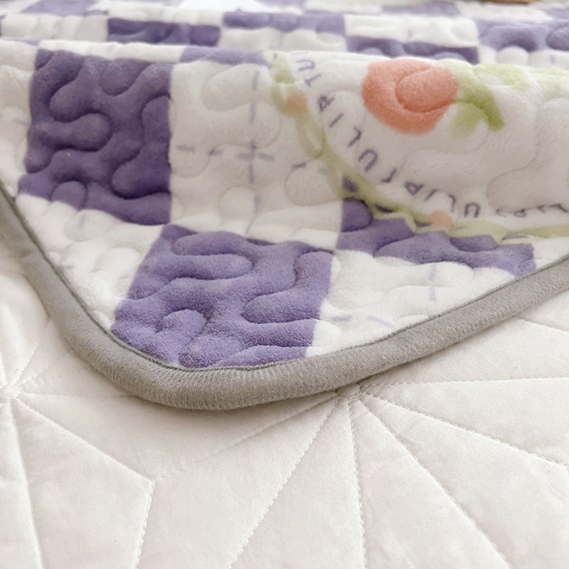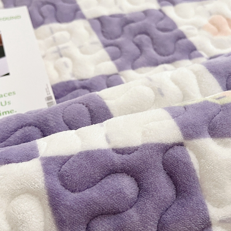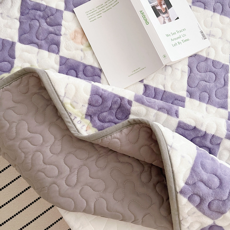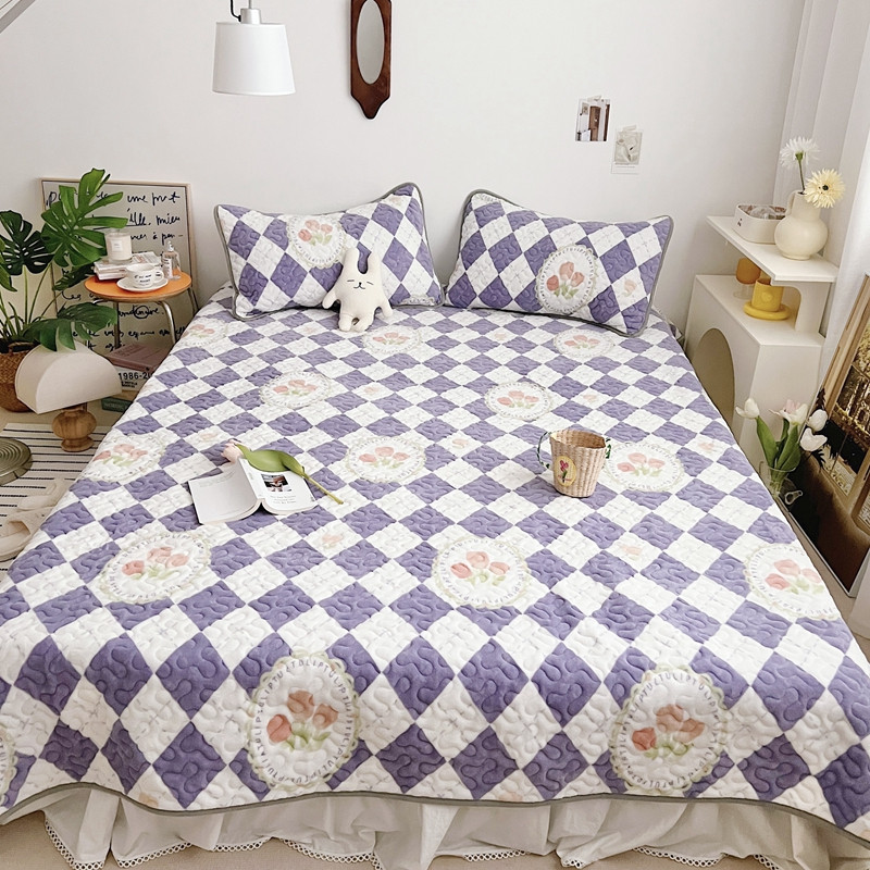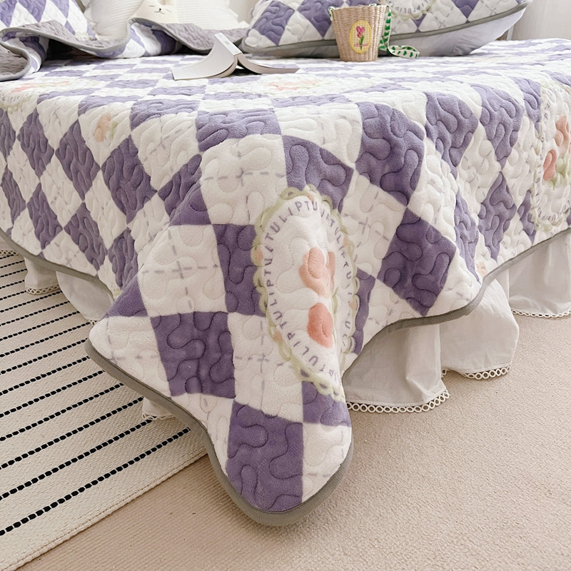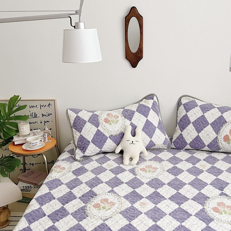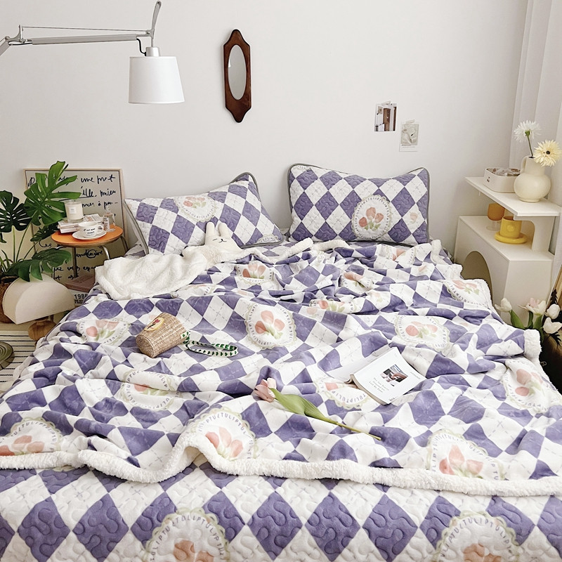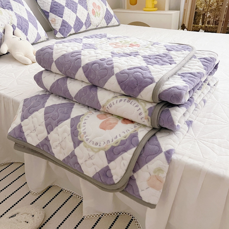 美乐迪 2022新款多功能牛奶绒亲肤棉床盖套件 格子郁金香
