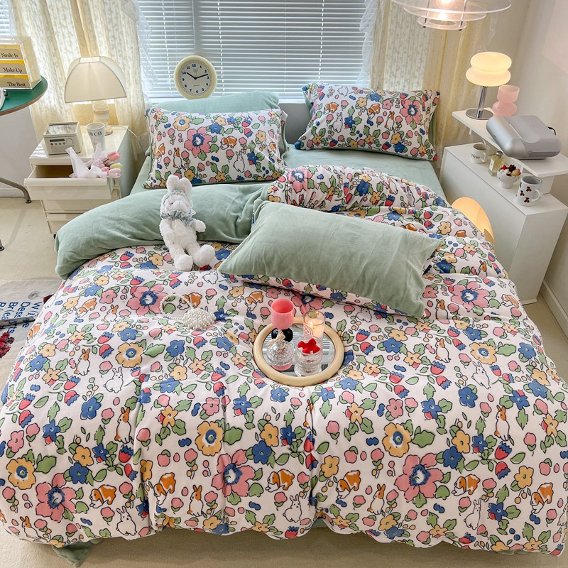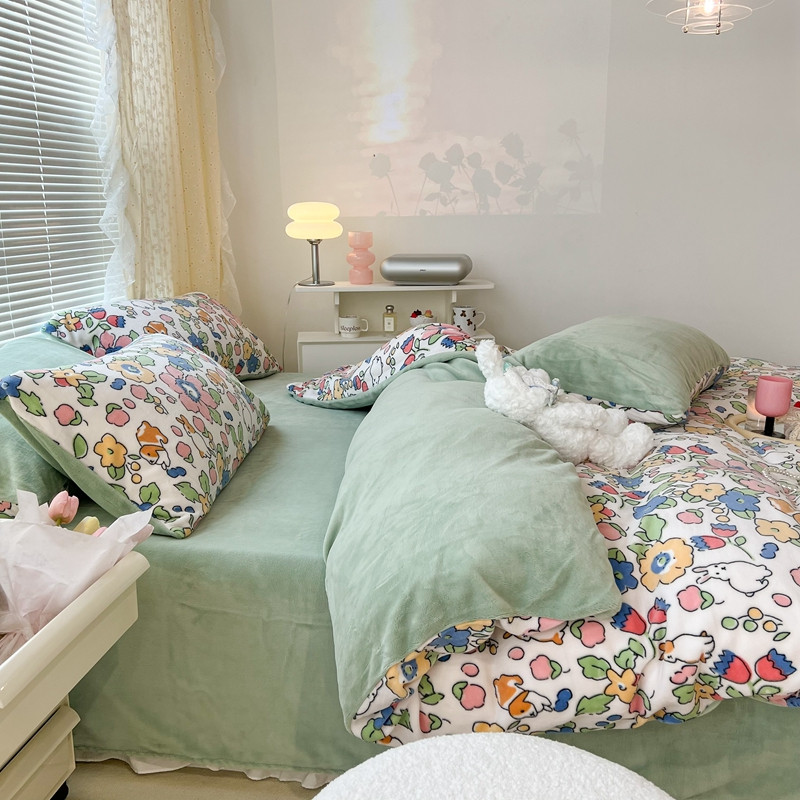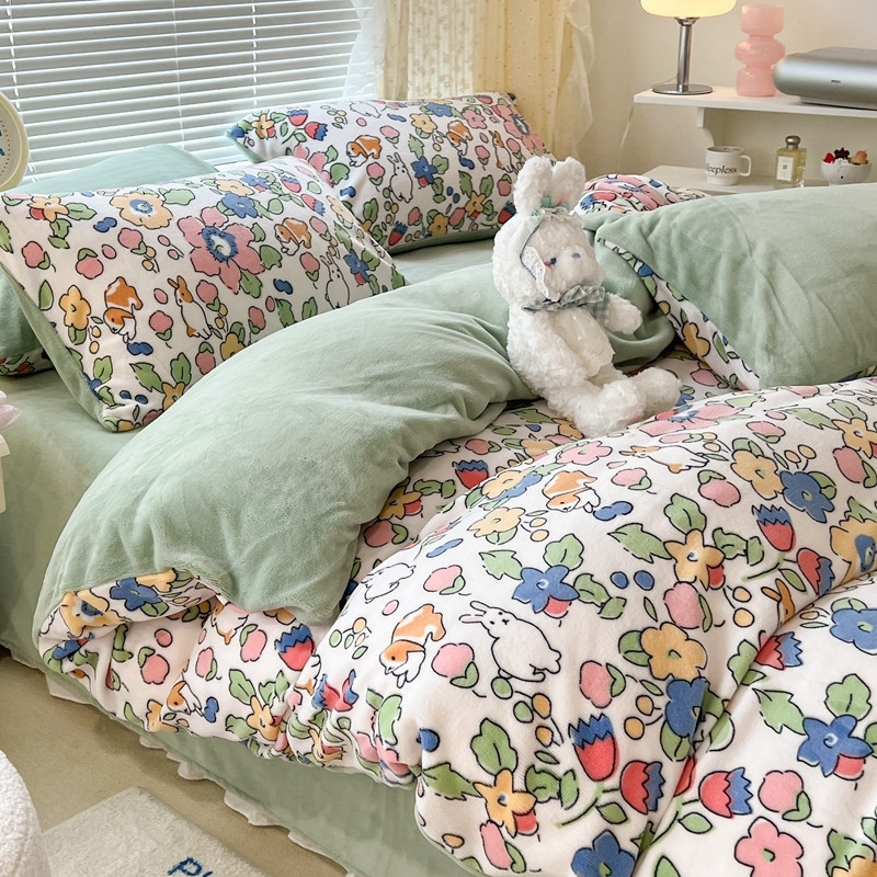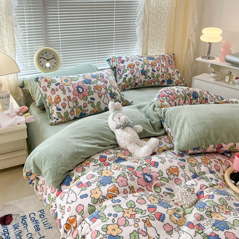 (总)昔可家纺 2024新款印花牛奶绒四件套系列-洛丽塔风,萝莉小兔,小熊烘焙屋,小熊玩偶屋