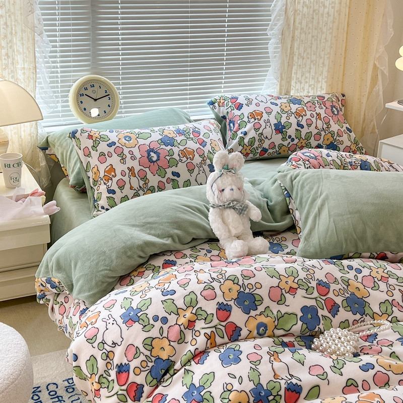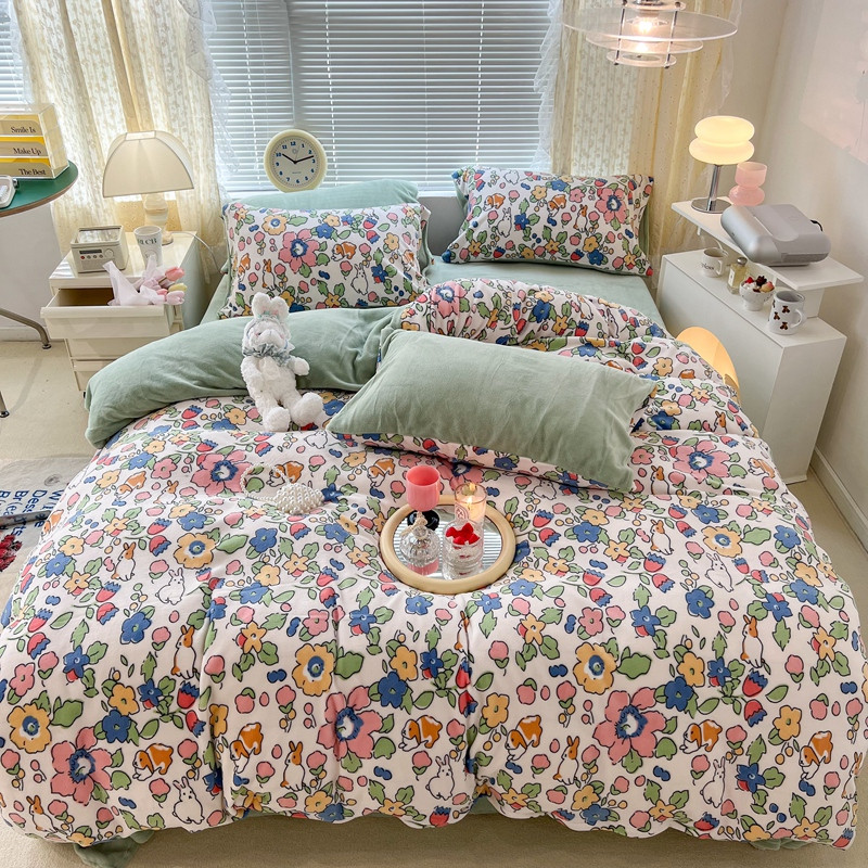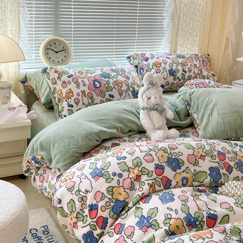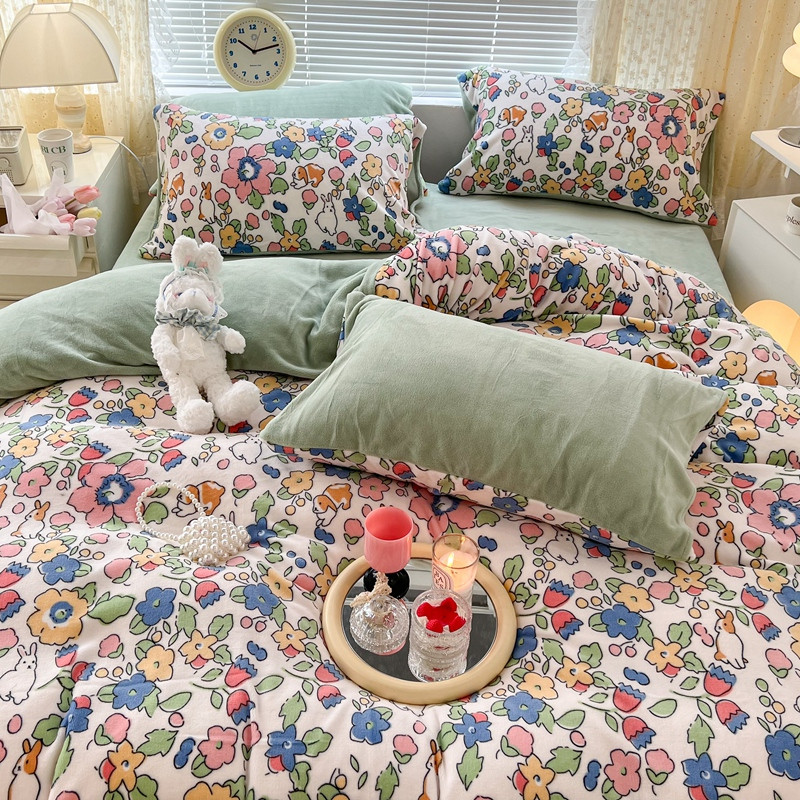 昔可 2022新款牛奶绒四件套花朵系列 爱丽丝仙境
