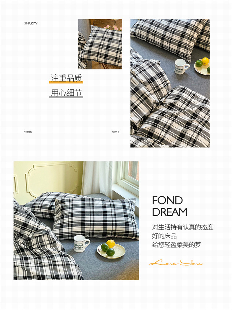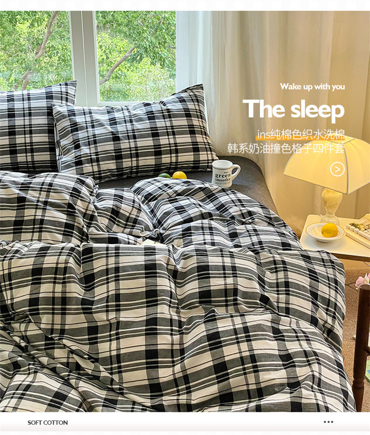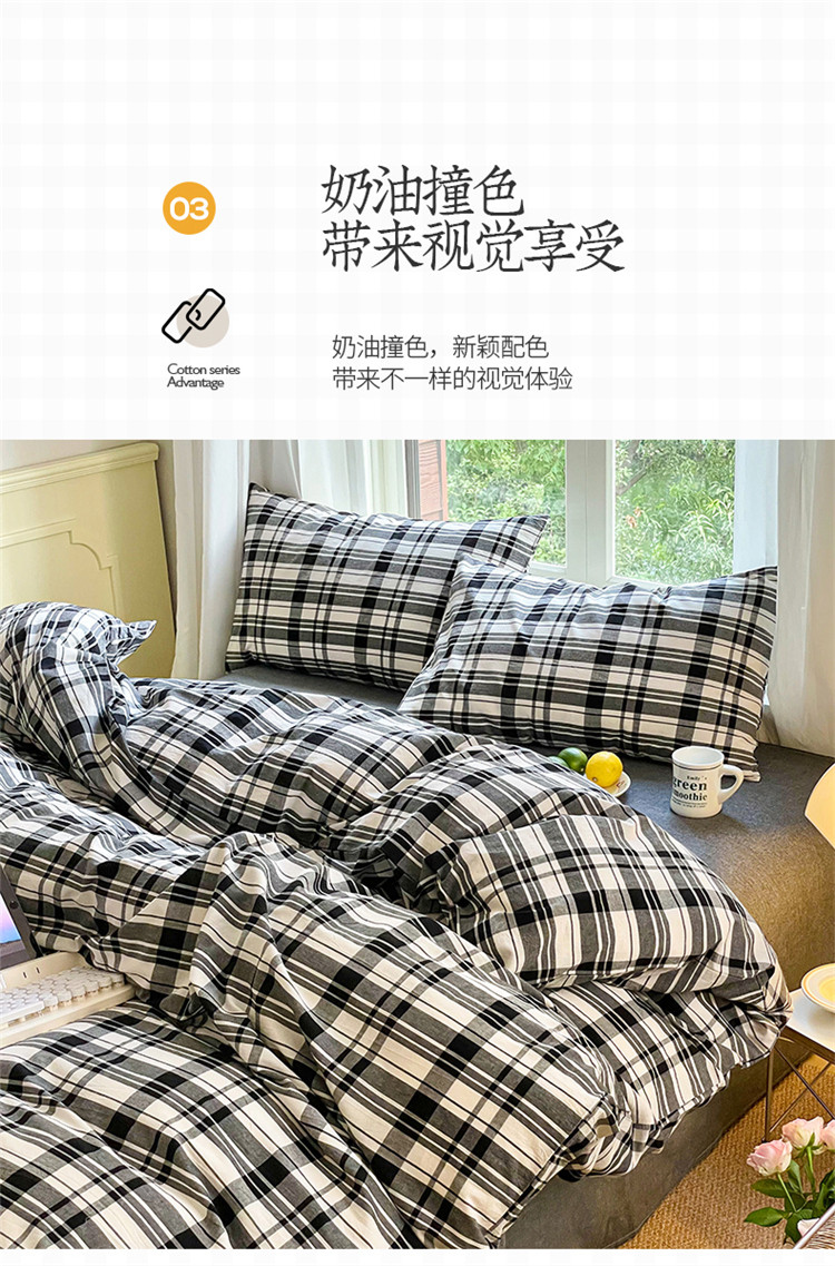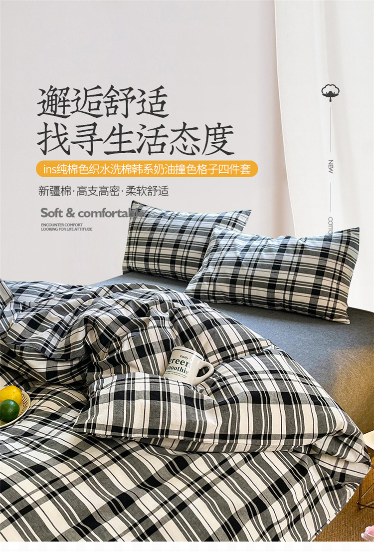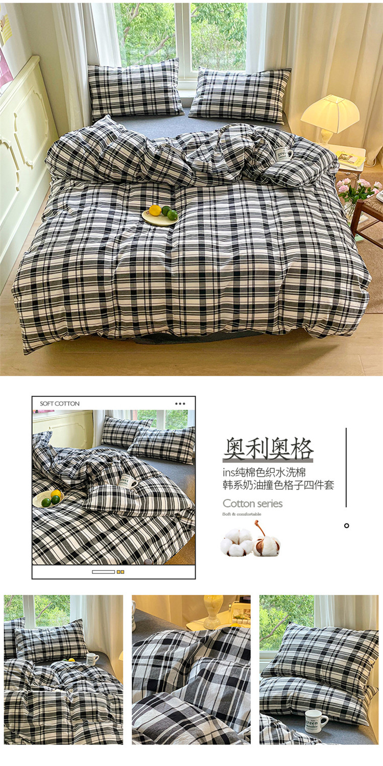 商品名称:桃子家居 ins纯棉色织水洗棉韩系奶油撞色格子四件套 奥利奥格