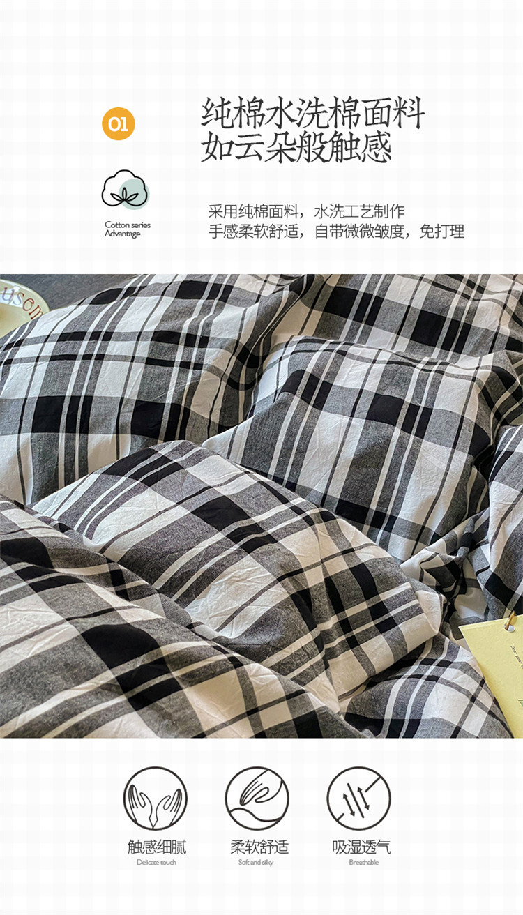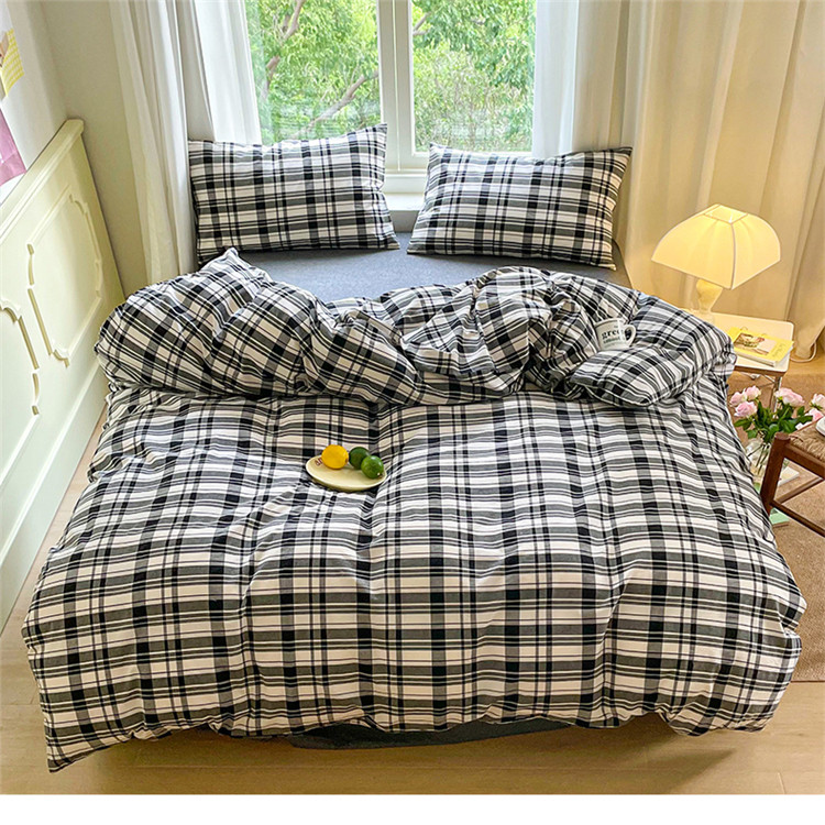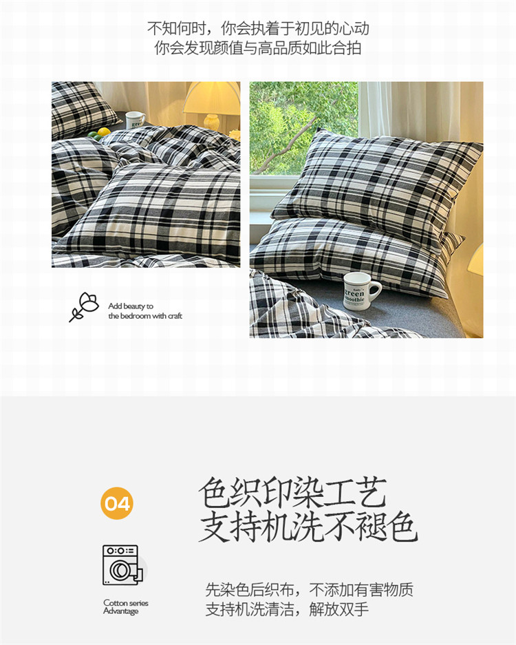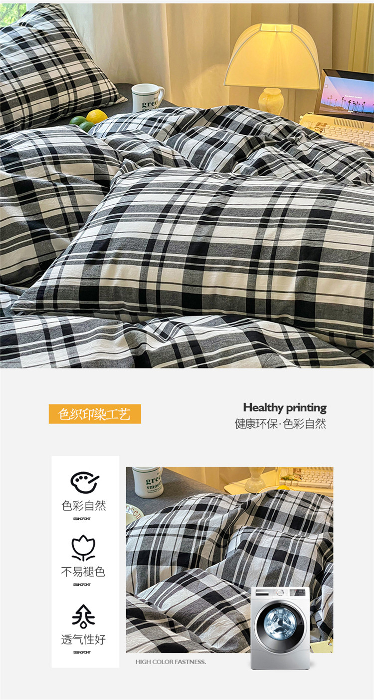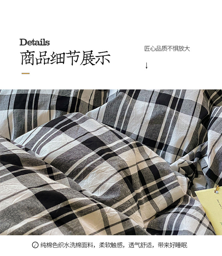商品名称:桃子家居 ins纯棉色织水洗棉韩系奶油撞色格子四件套 奥利奥格