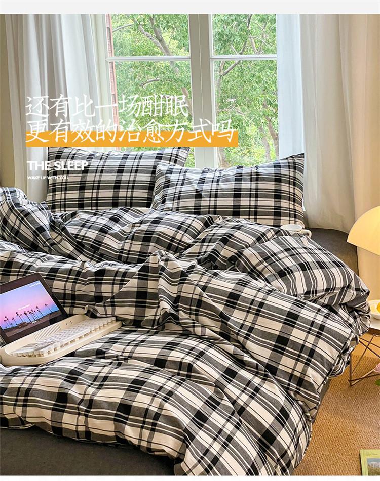 桃子家居 ins纯棉色织水洗棉韩系奶油撞色格子四件套 奥利奥格