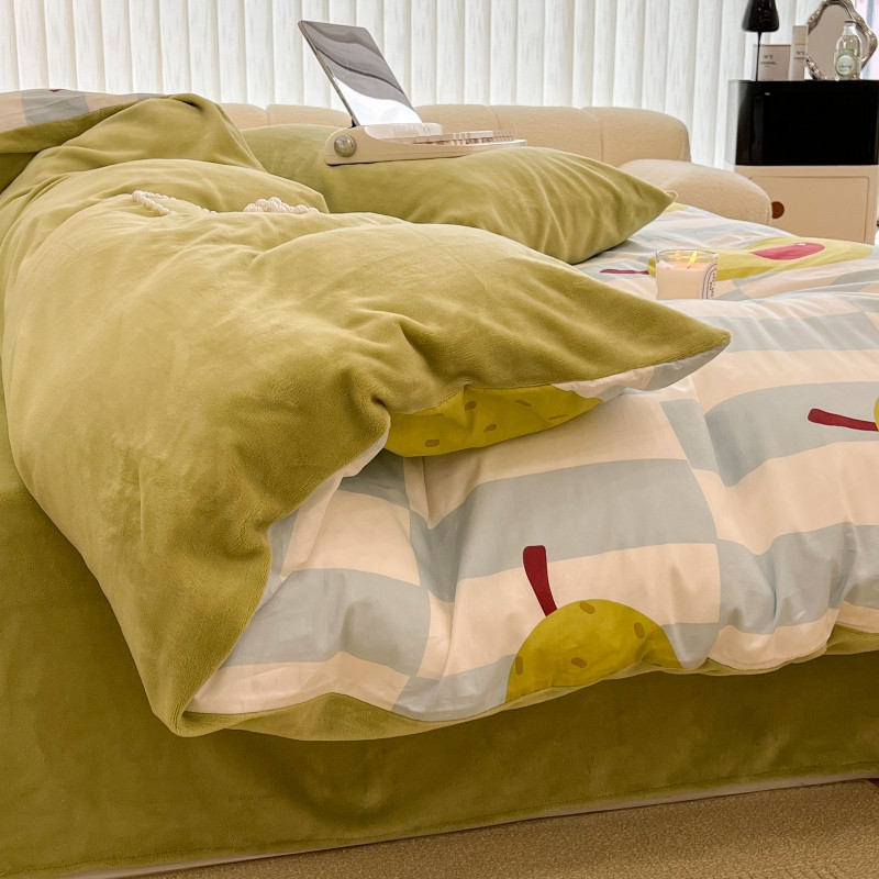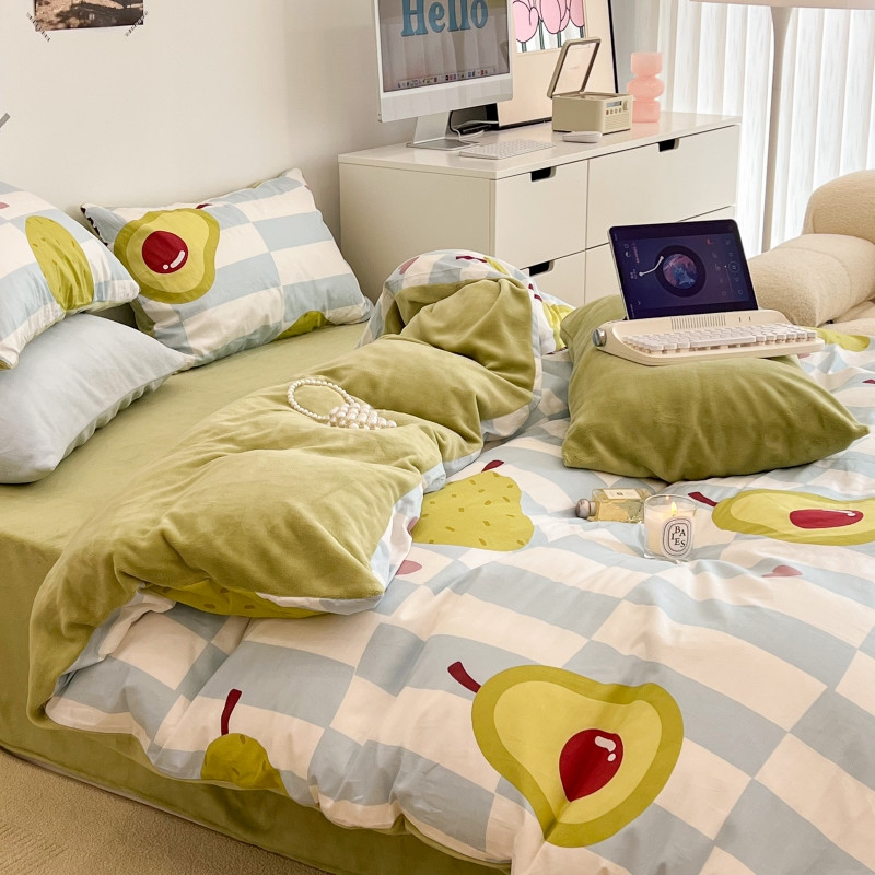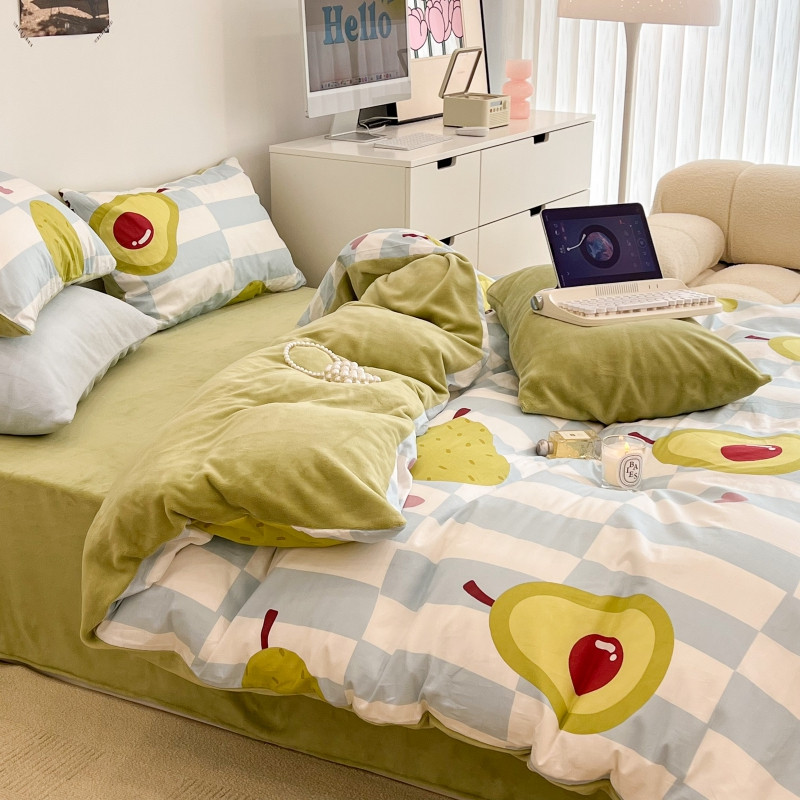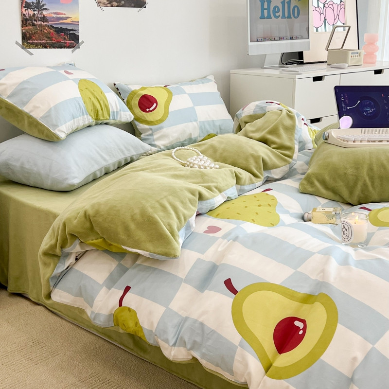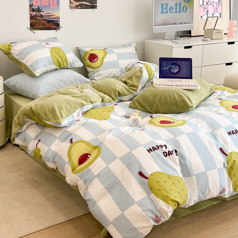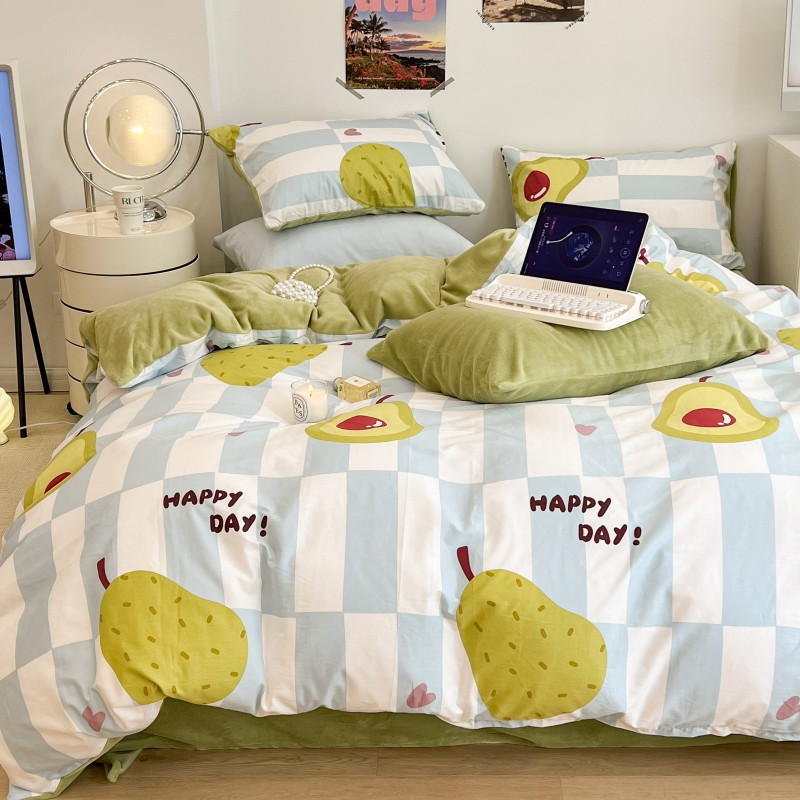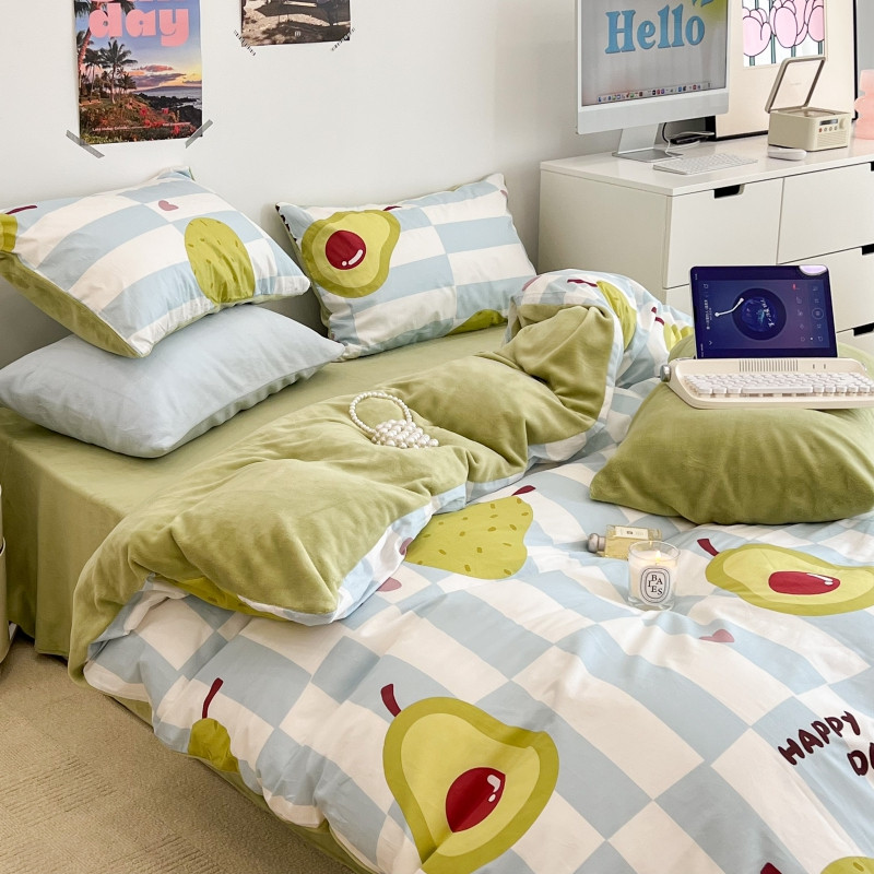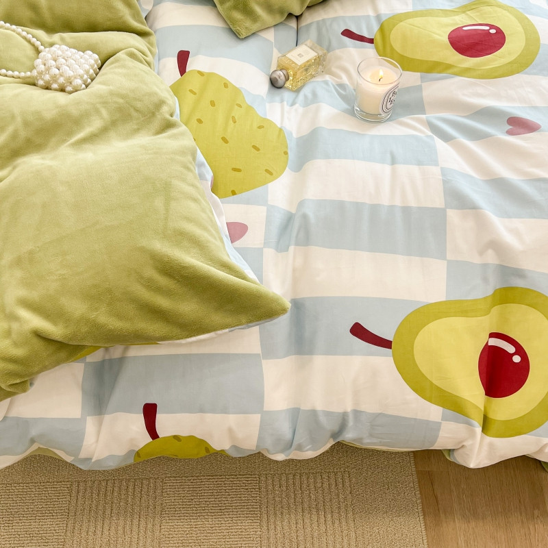 商品名称:昔可 2022新款梦幻公主风系列棉加绒印花四件套 蓝棋盘绿果