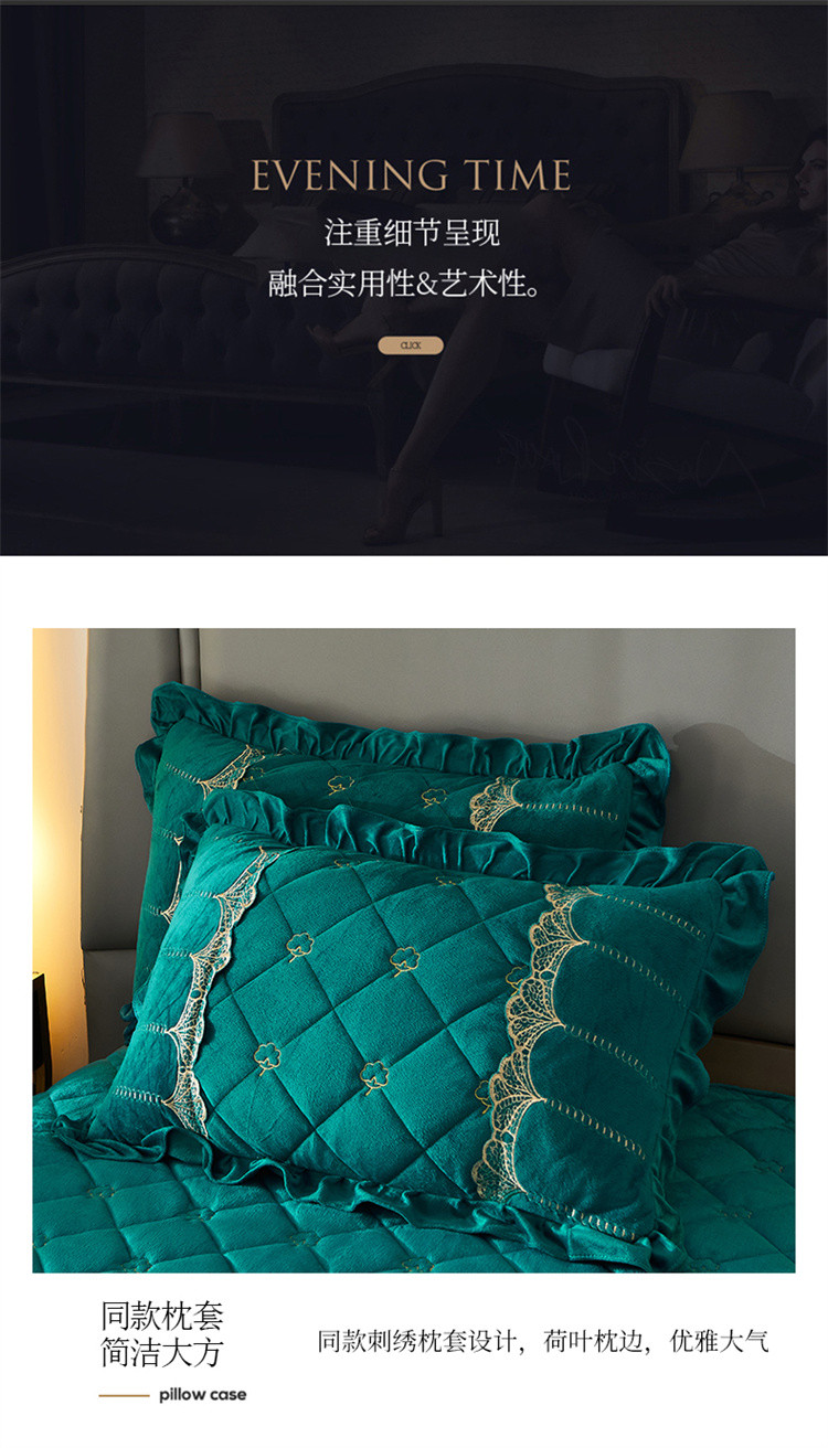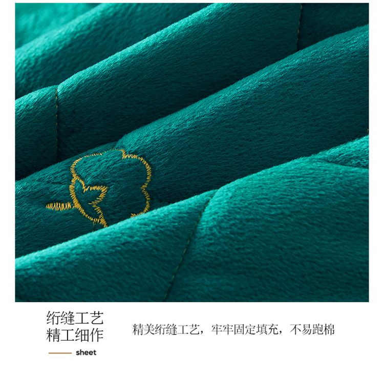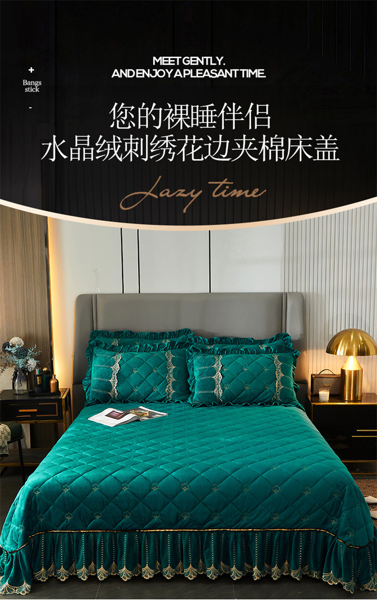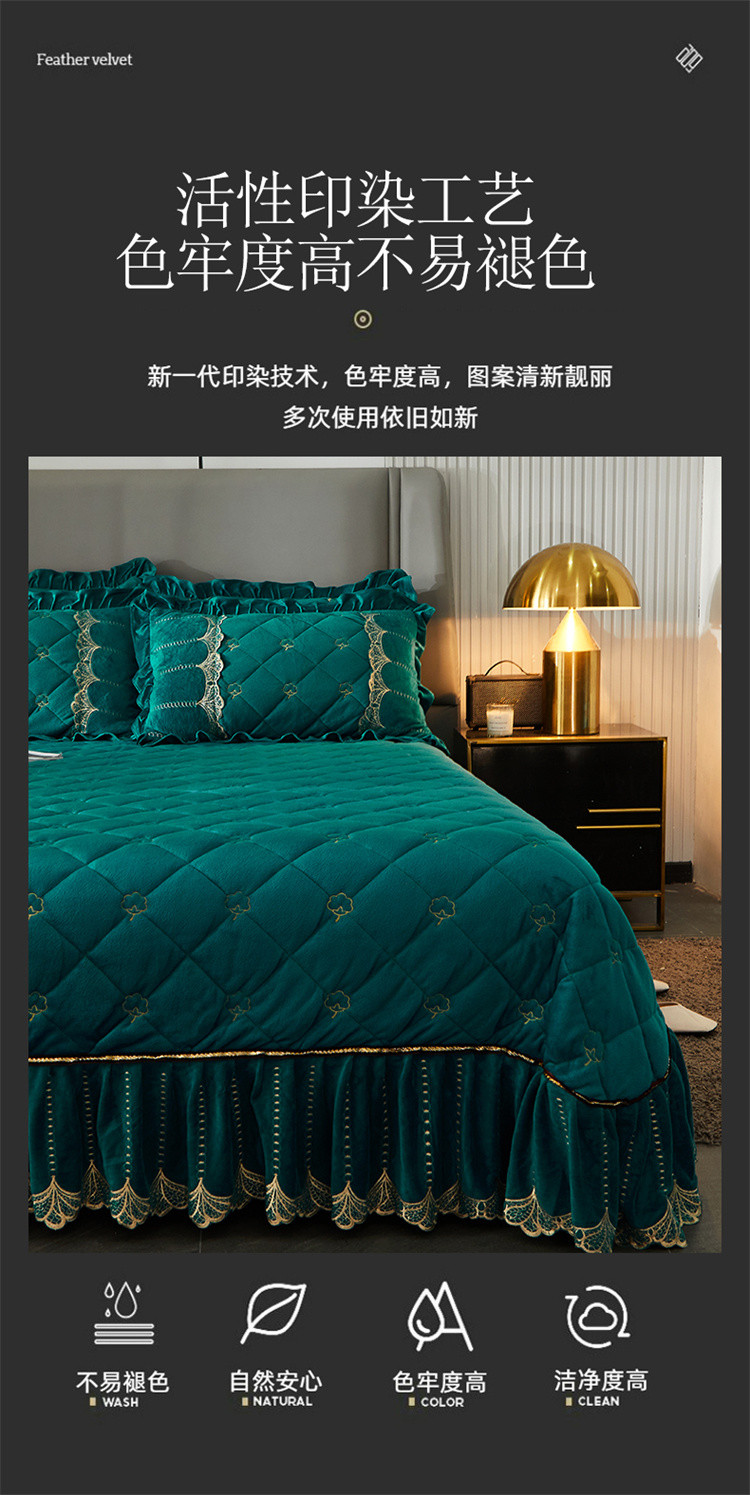 商品名称:十个点家纺 2024新款刺绣水晶绒床盖三件套 宝石绿