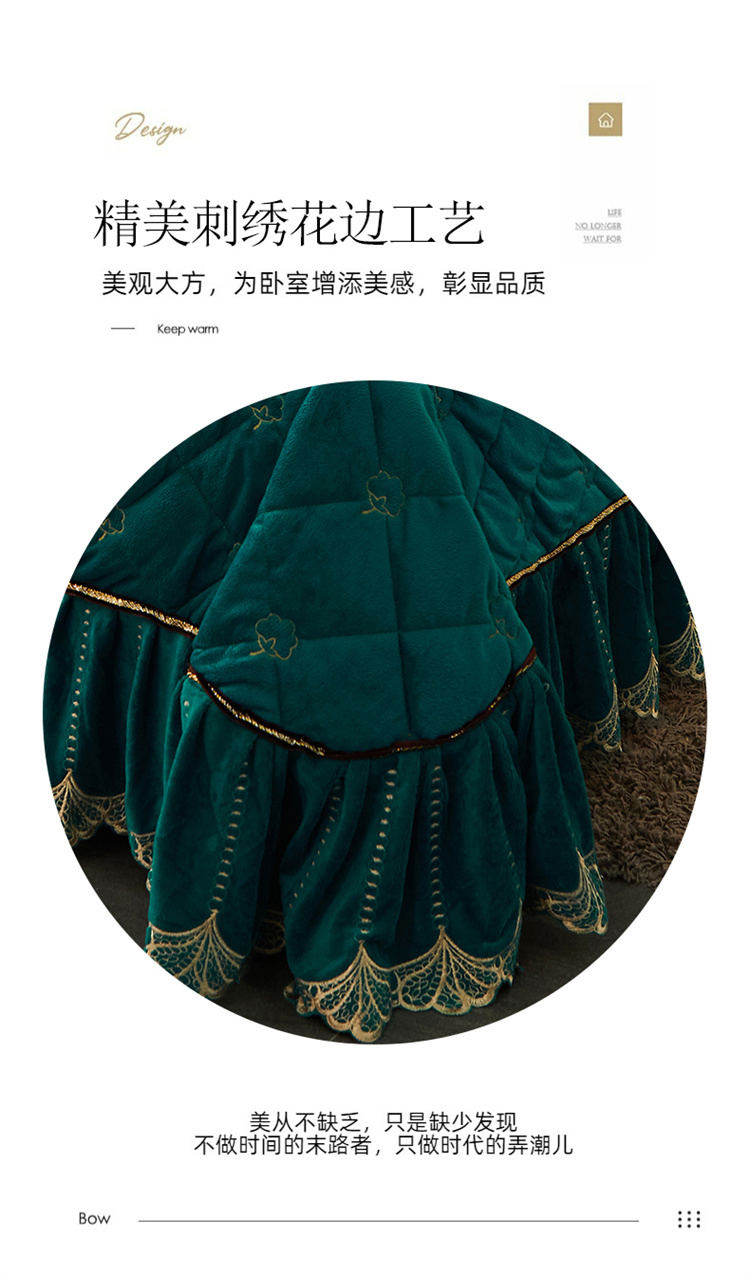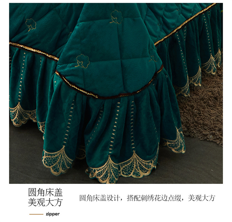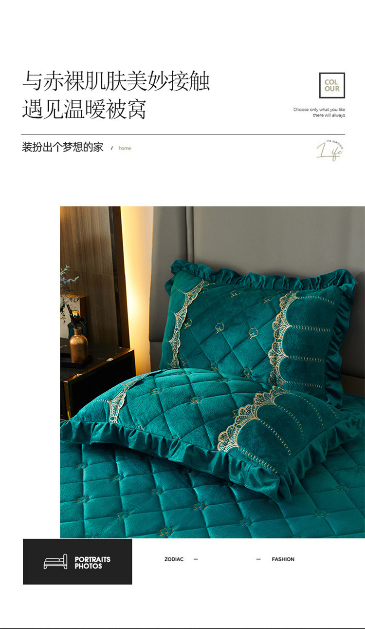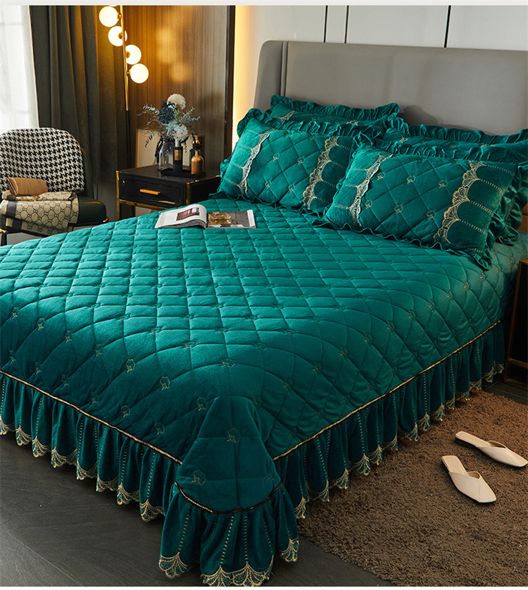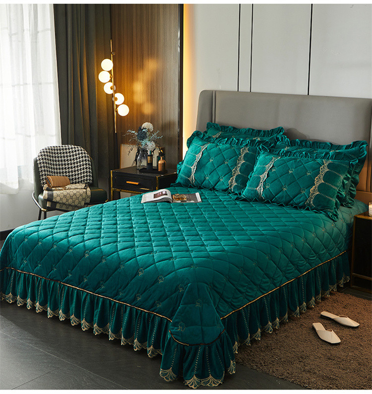 商品名称:十个点家纺 2024新款刺绣水晶绒床盖三件套 宝石绿