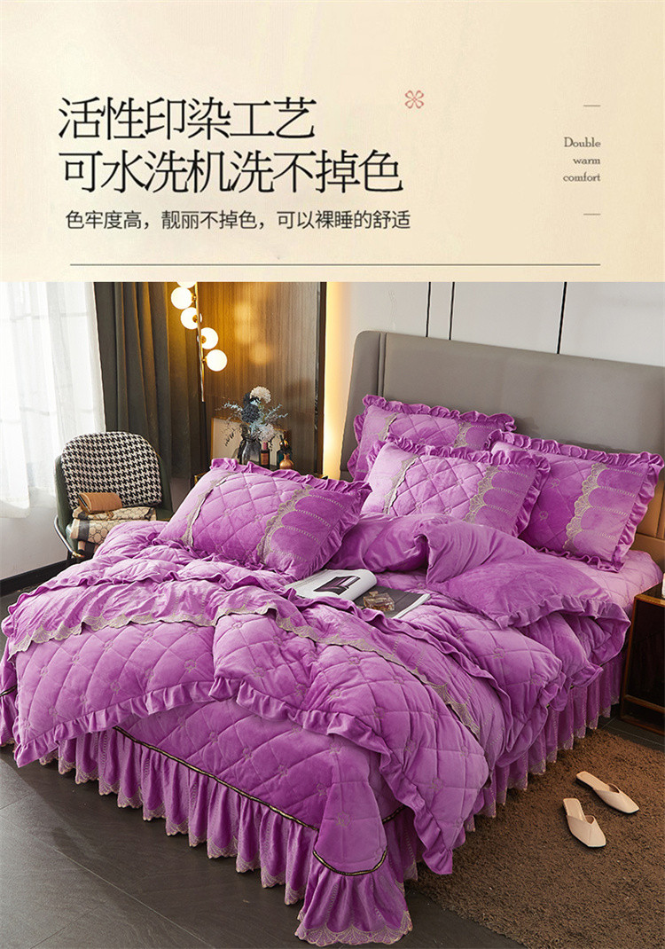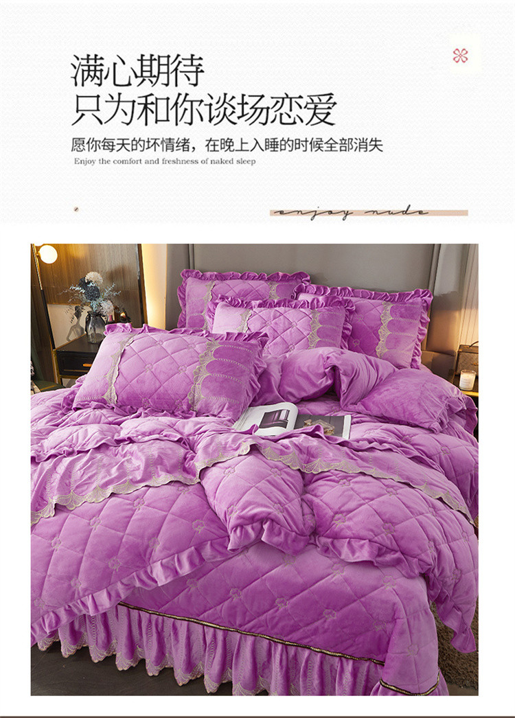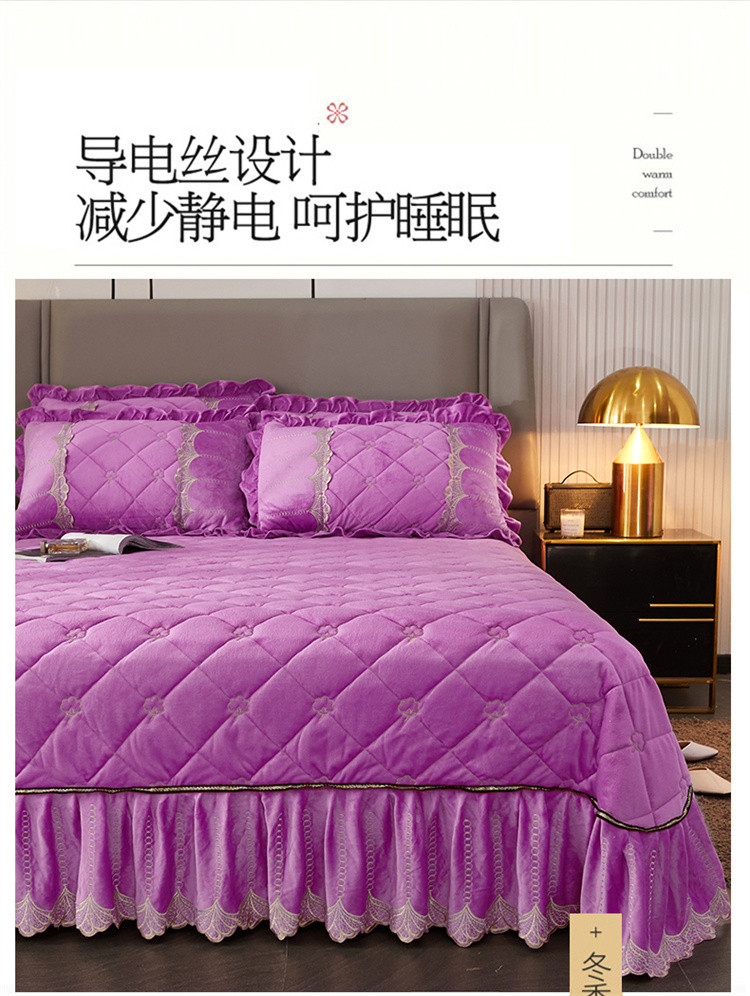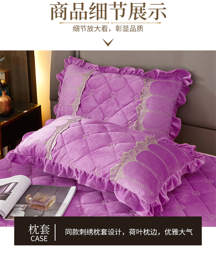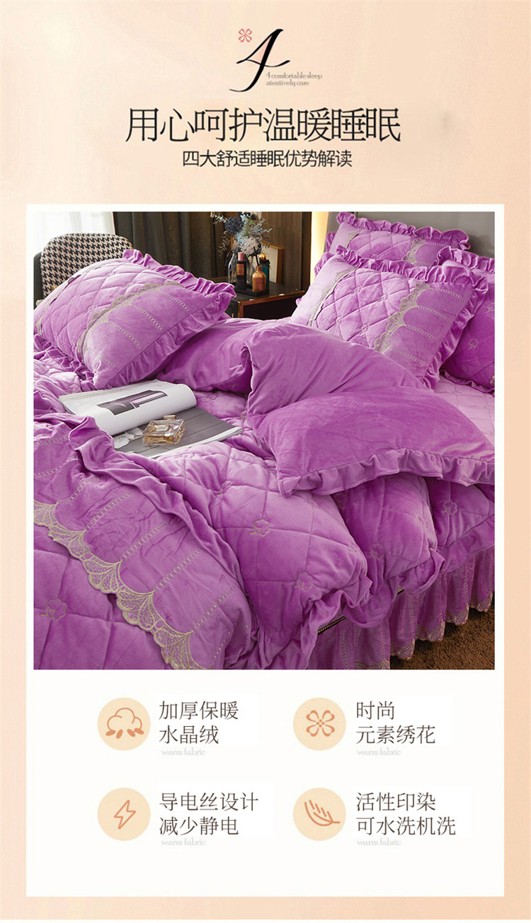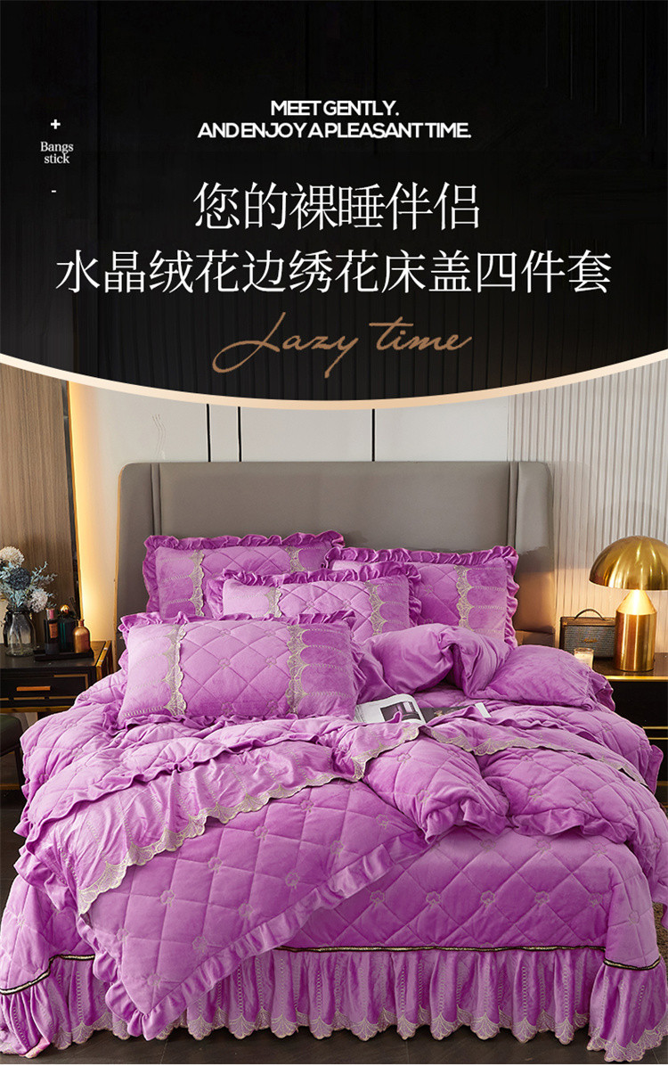 商品名称:十个点家纺 2024新款刺绣水晶绒床盖四件套 紫色