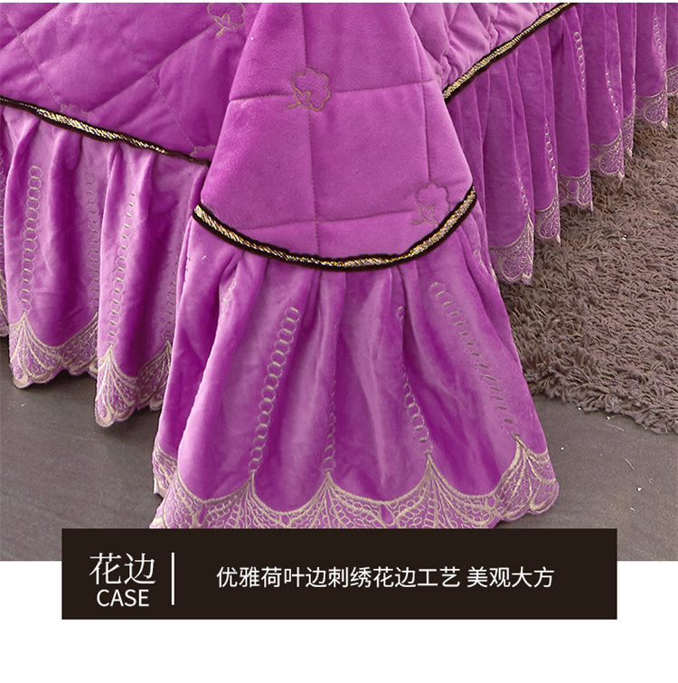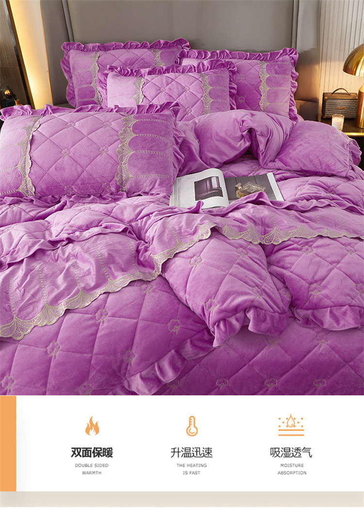 十个点家纺 2024新款刺绣水晶绒床盖四件套 紫色