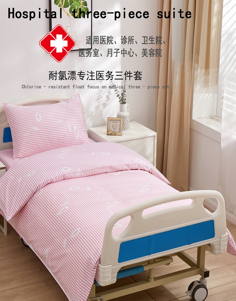 啊雅 2025耐氯漂涤棉医护床上用品医院三件套 诊所粉条