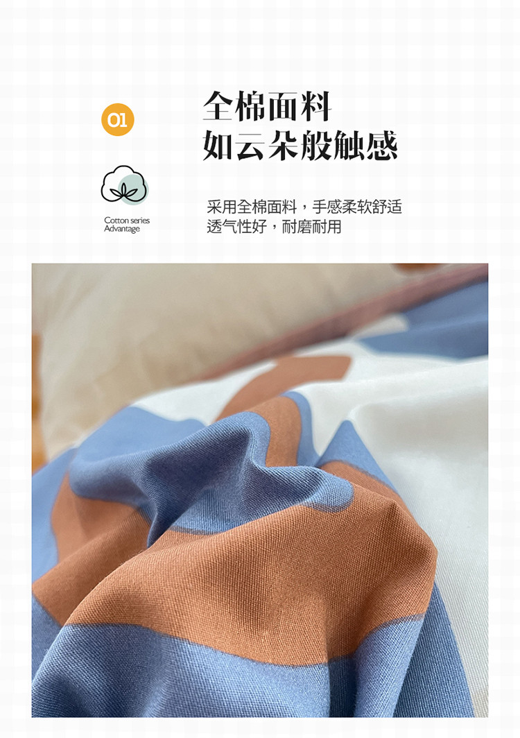 商品名称:吉象家纺 2022新款全棉北欧风印花系列单被套 悉尼豆沙