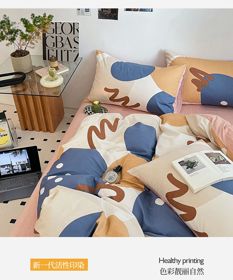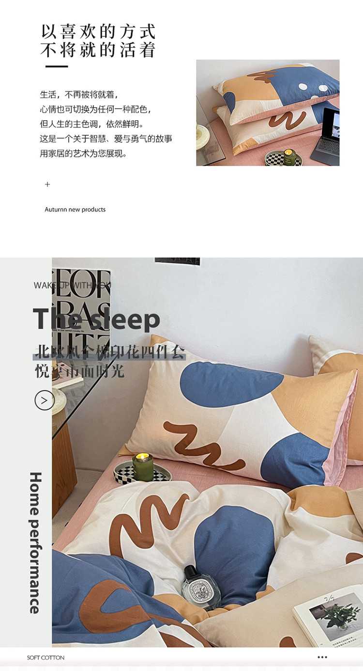 (总)吉象 2022新款全棉活性印花四件套-北欧风系列,马里奥,悉尼-豆沙,悉尼-绿