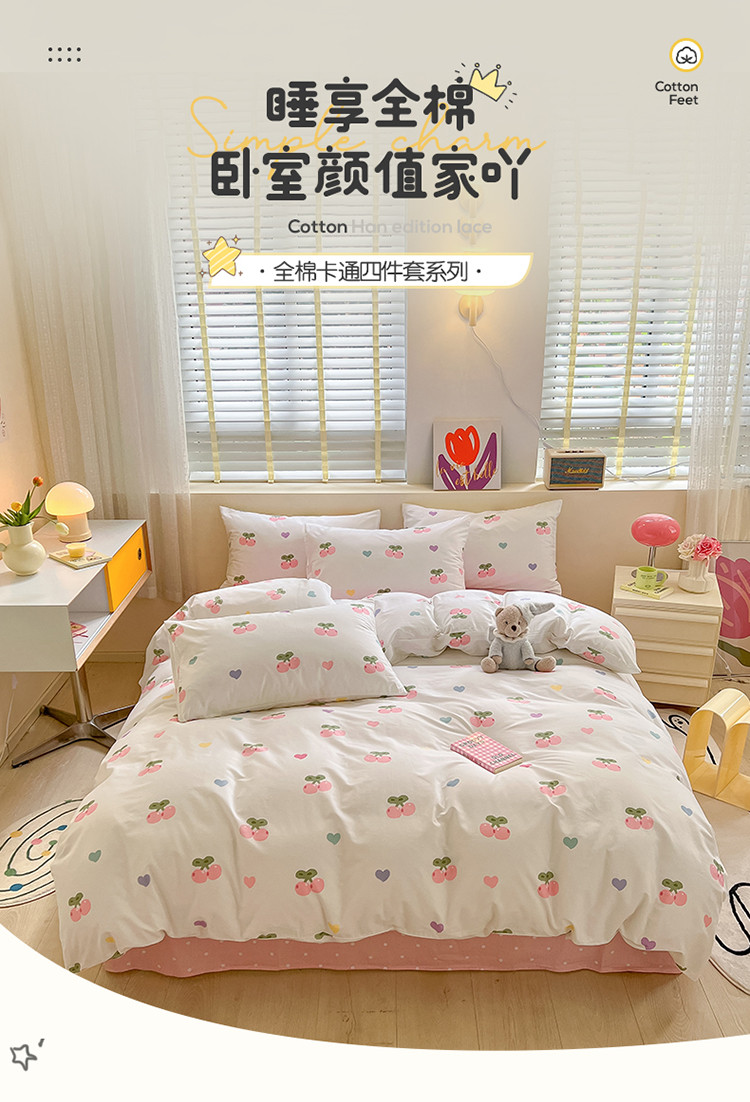 小懒猪 2023新款春夏全棉小清新系列四件套小甜心