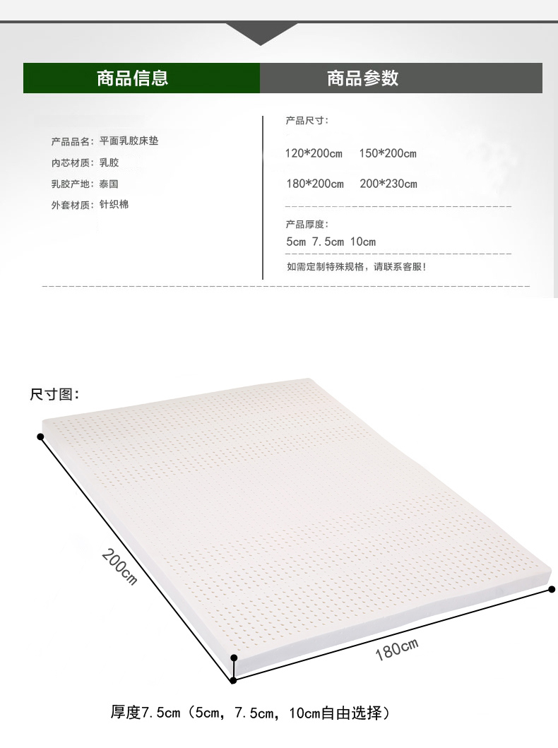 商品名称:沃兰国际 泰国天然乳胶颗粒按摩床垫5-10cm单双人送内外套