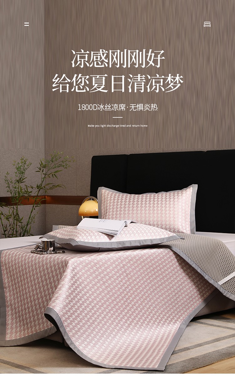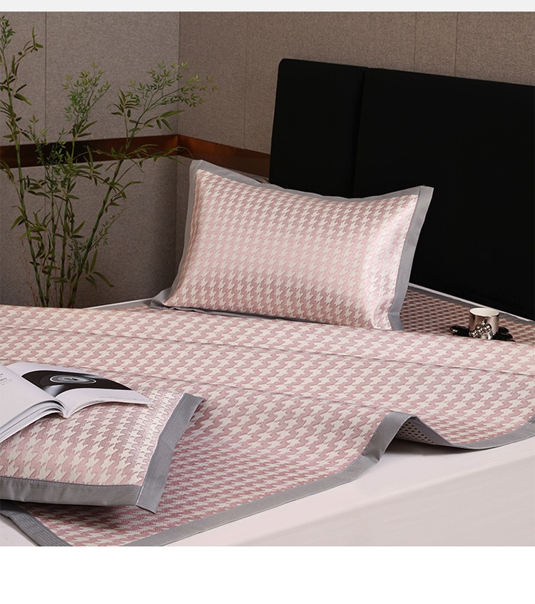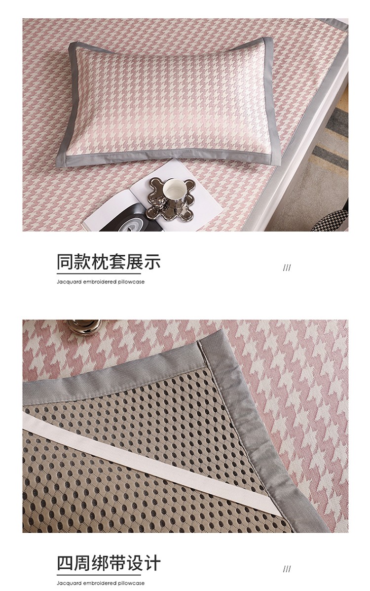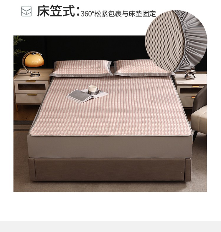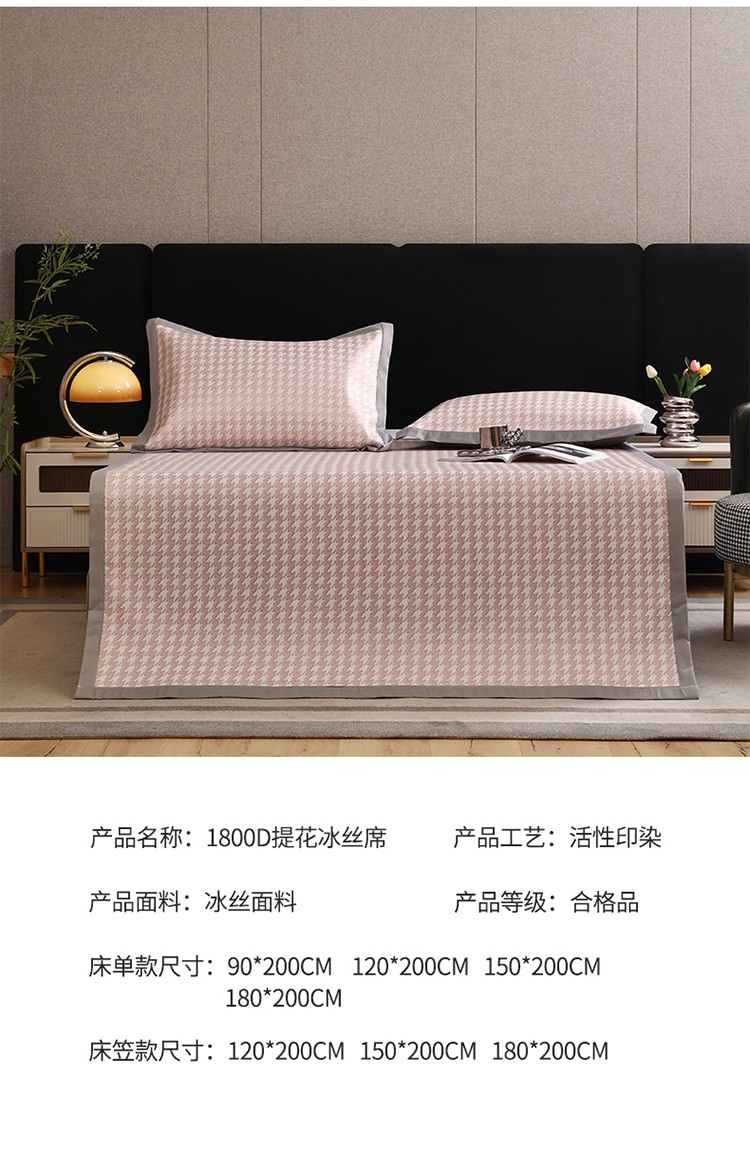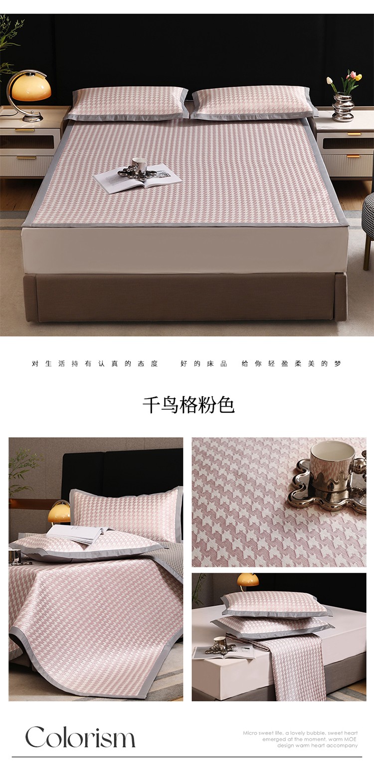 商品名称:航途席业 新款1800D冰丝席床席床笠款凉席 床席款-千鸟格粉色