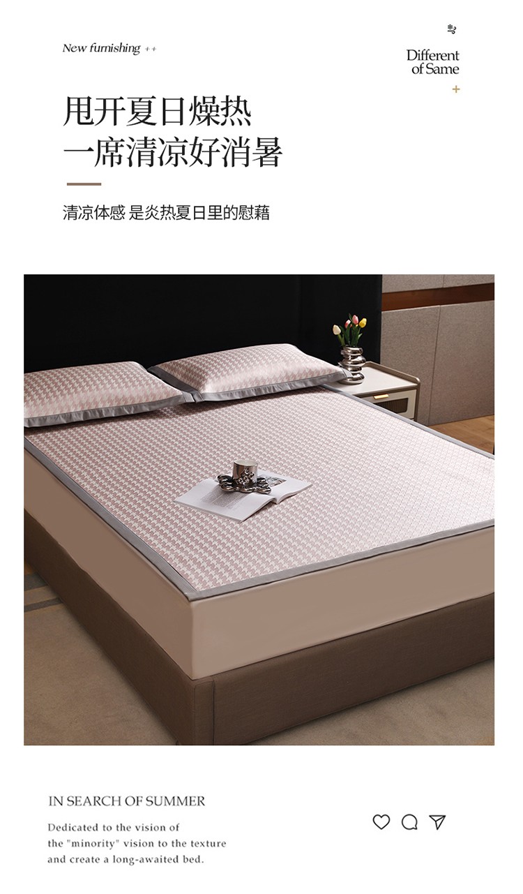航途席业 新款1800D冰丝席床席床笠款凉席 床席款-千鸟格粉色