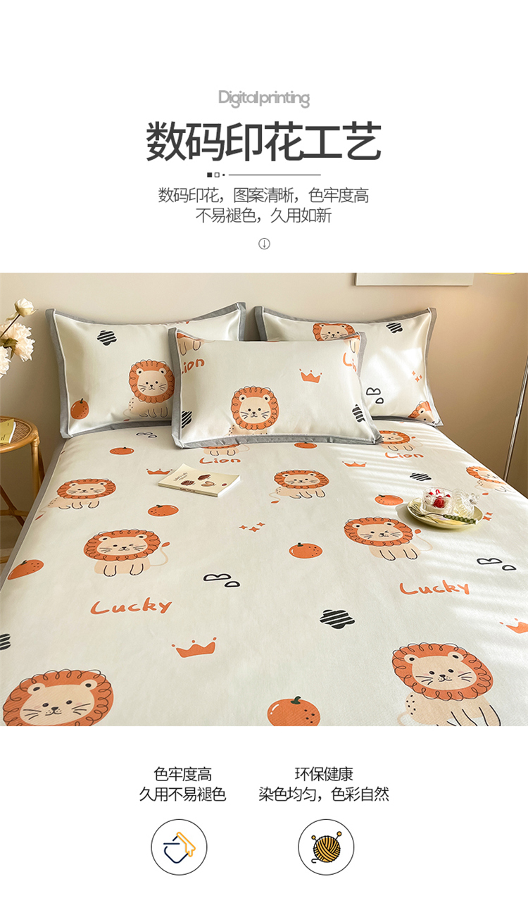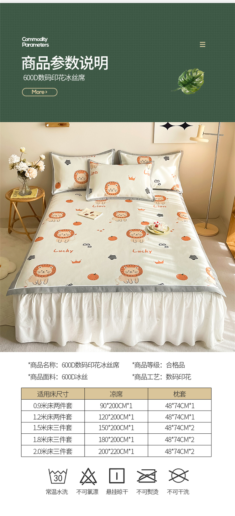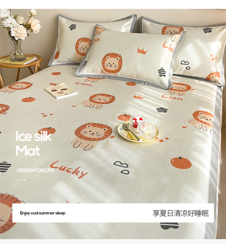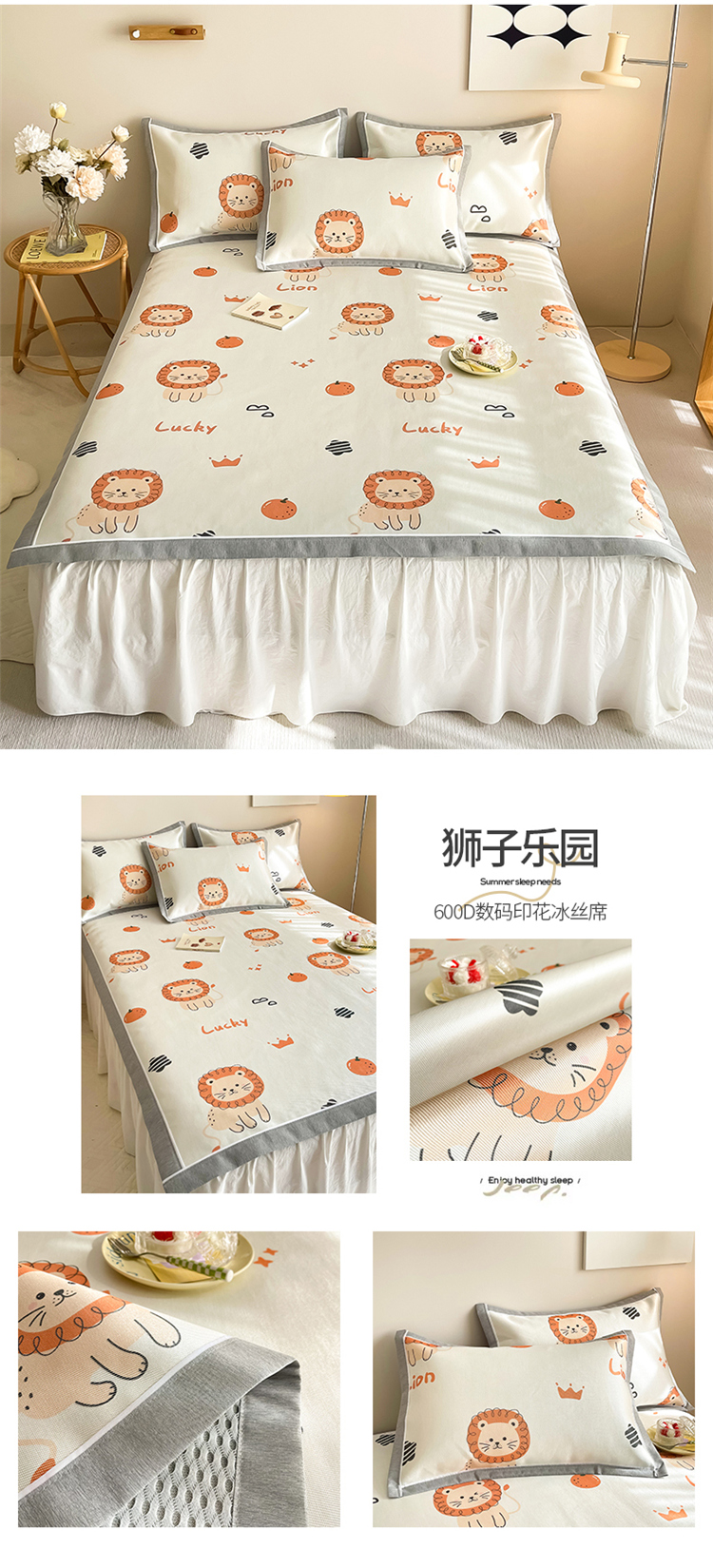 商品名称:懒猫 2024新款600D数码印花冰丝席 狮子乐园