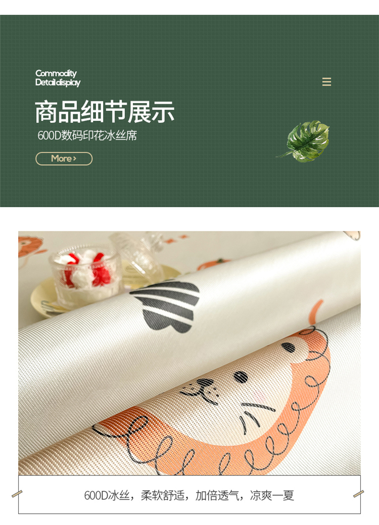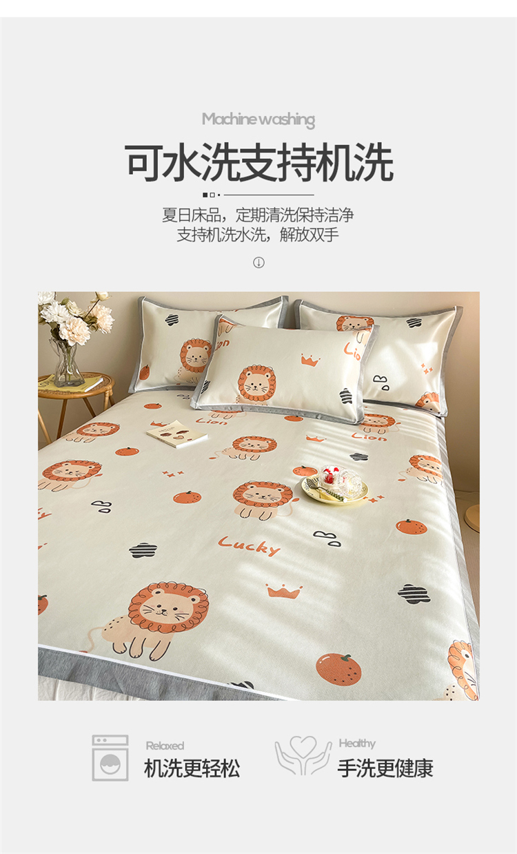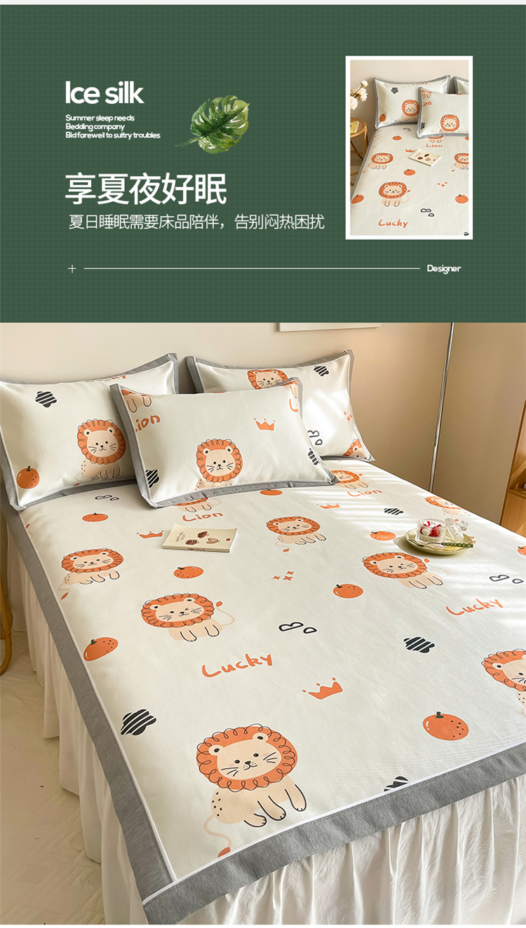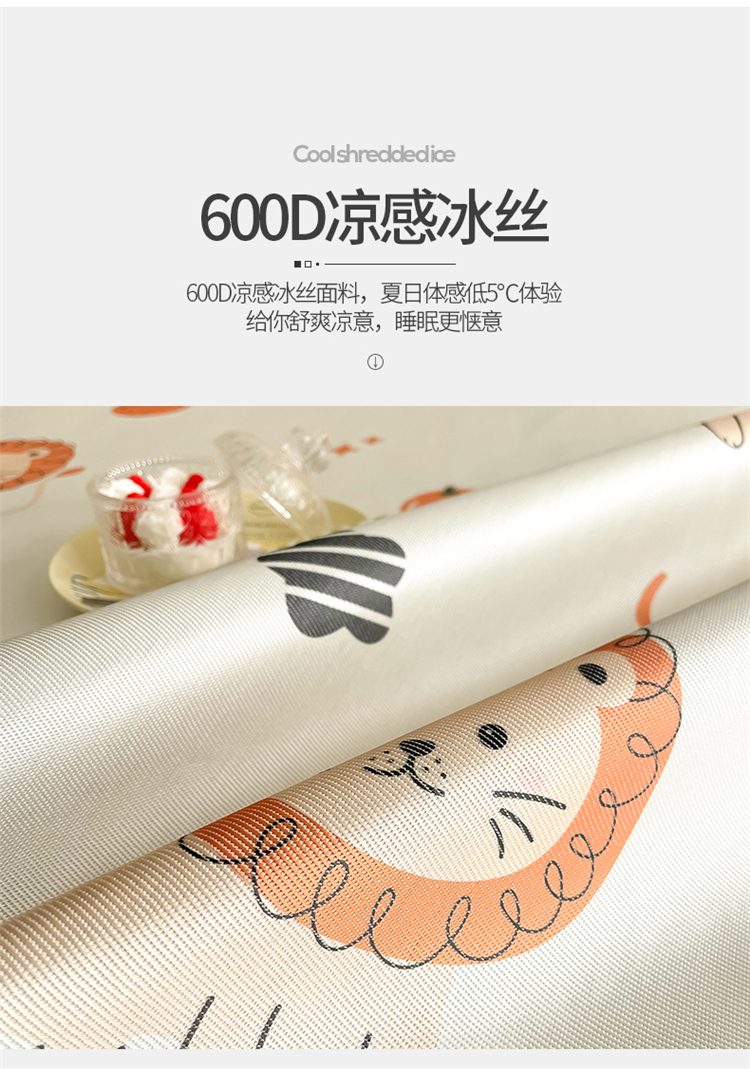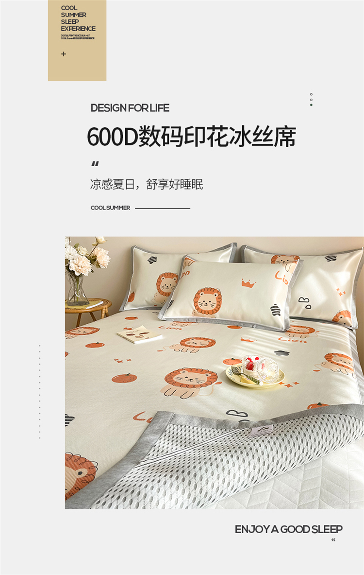 商品名称:懒猫 2024新款600D数码印花冰丝席 狮子乐园
