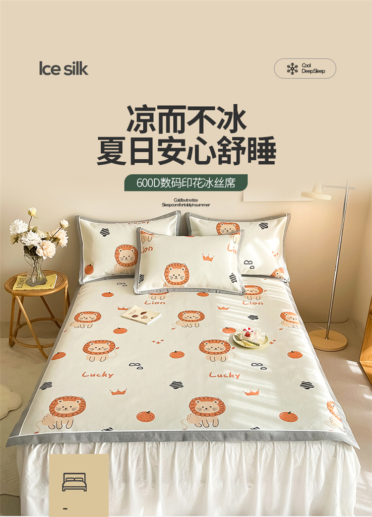 懒猫 2024新款600D数码印花冰丝席 狮子乐园