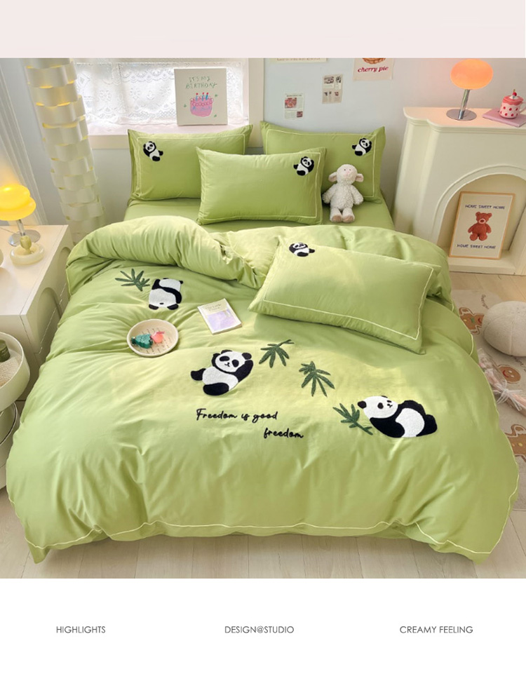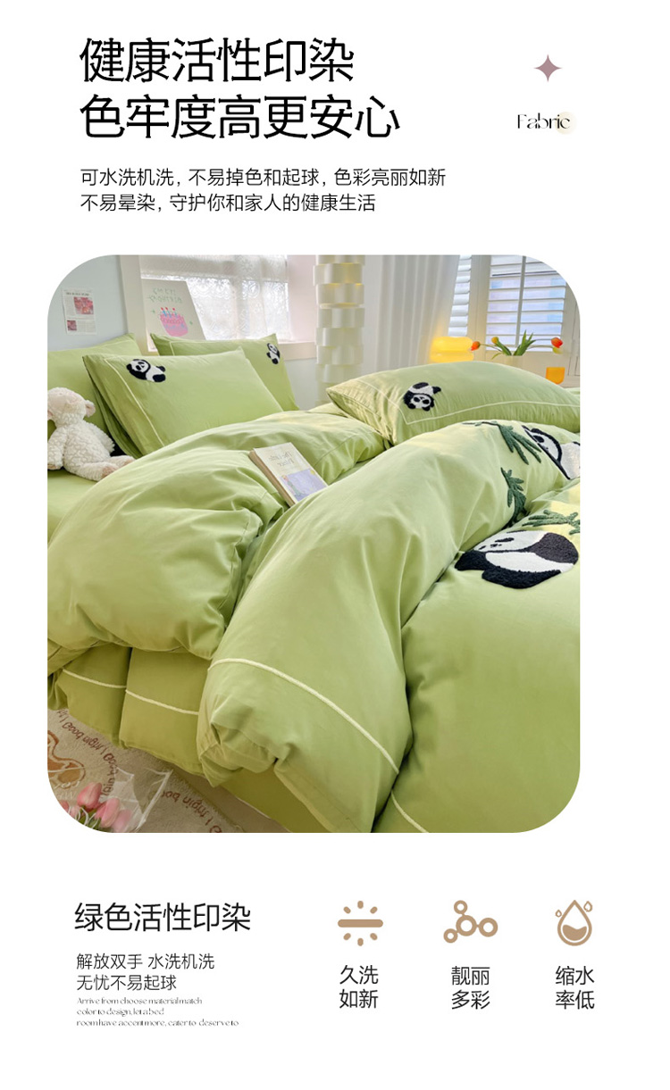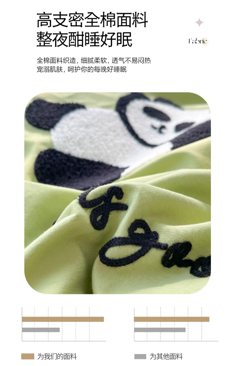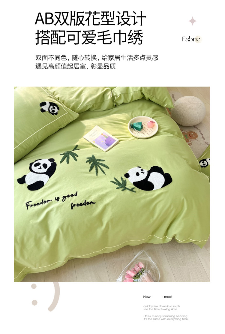 商品名称:丽涵家纺2024新款全棉13376毛巾绣顽皮熊猫系列四件套顽皮熊猫-绿