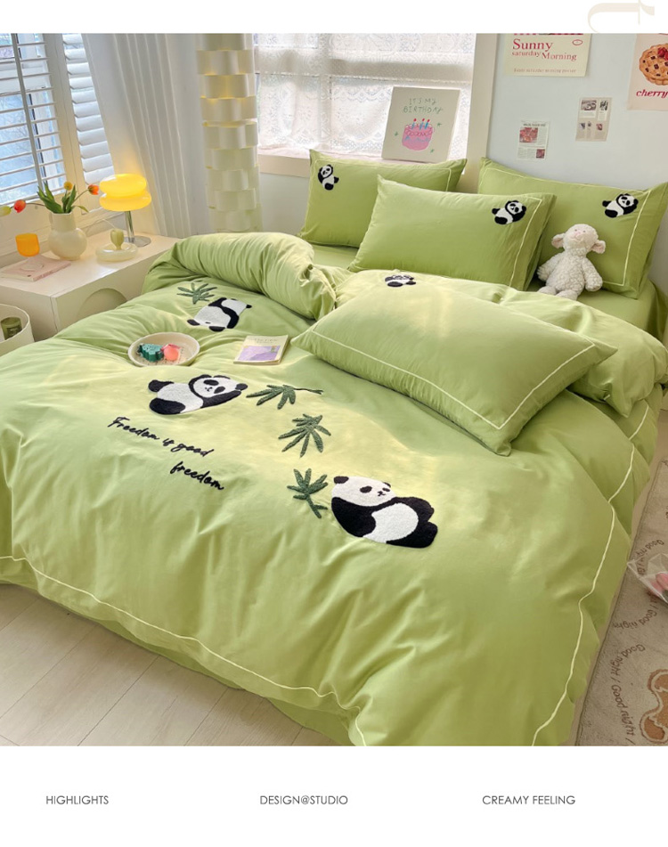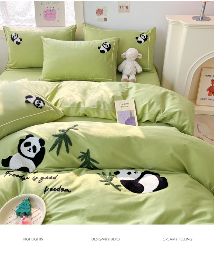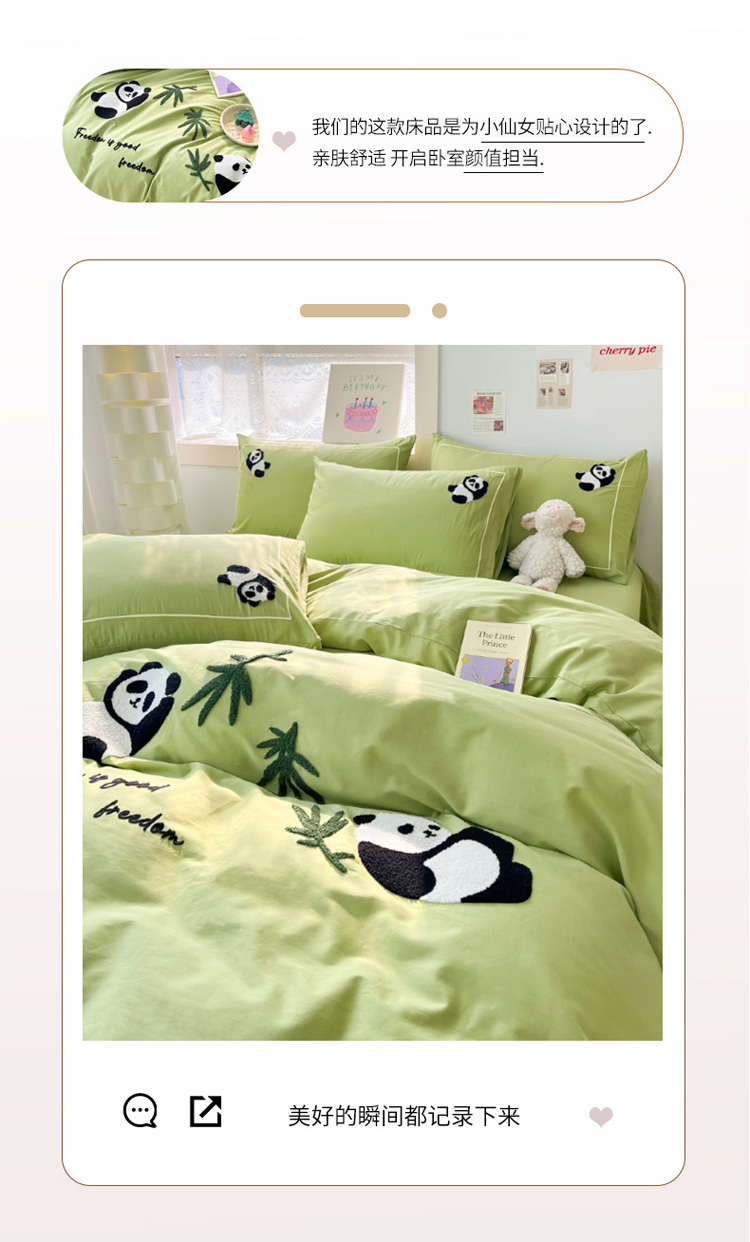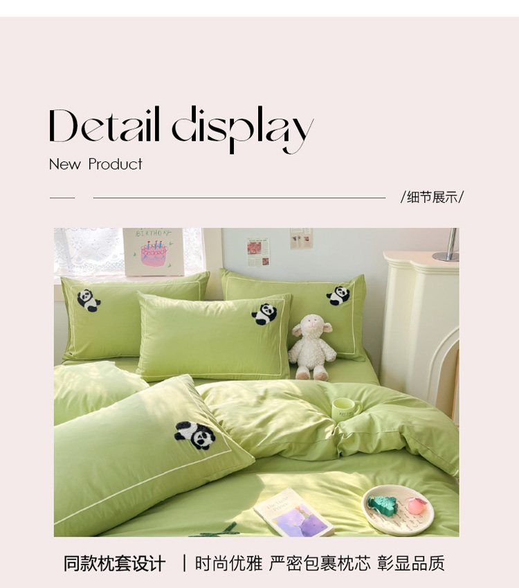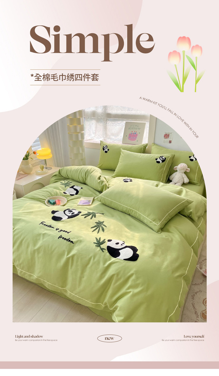 商品名称:丽涵家纺2024新款全棉13376毛巾绣顽皮熊猫系列四件套顽皮熊猫-绿