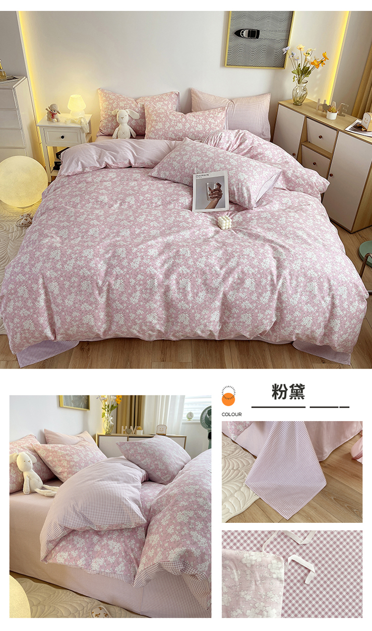 商品名称:千朵 2023新款13372全棉印花四件套 粉黛