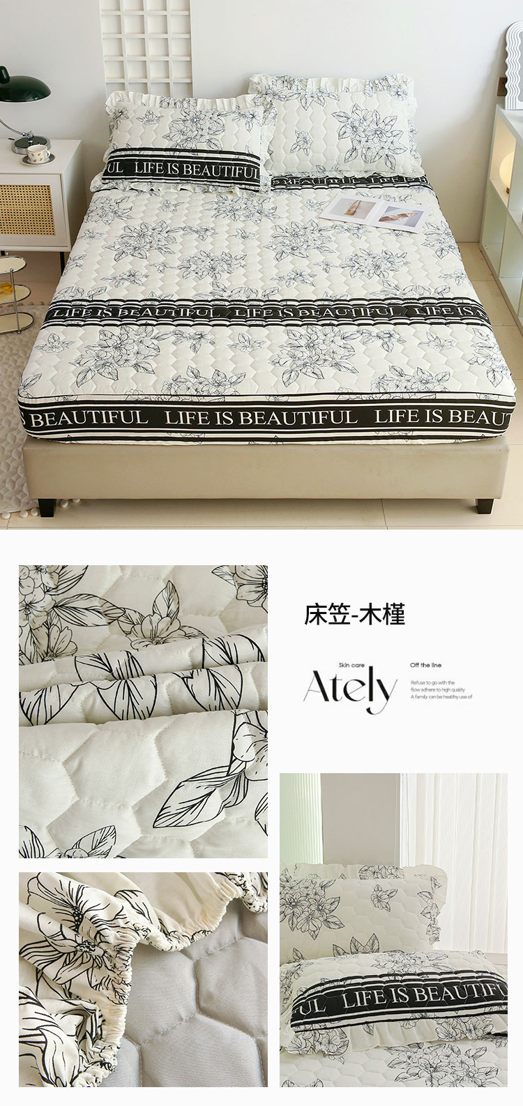• 91家纺网 家纺一手货源 找家纺 情煊 2023新款全棉夹棉纯色印花床笠款(可定制尺寸) 床笠-木槿