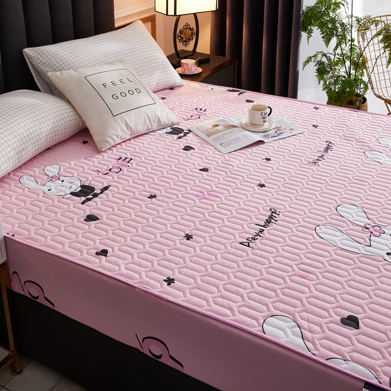 • 91家纺网 家纺一手货源 找家纺 202直播新款亲肤水洗棉夹棉防水床笠床垫床罩保护罩 欢乐兔