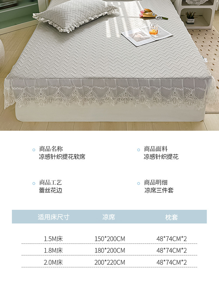当前位置: 91家纺网 > 商品网购 > 床上用品 > 凉席 > 其他凉席 > 新款聚乙烯凉感针织提花凉席床笠款 气质灰