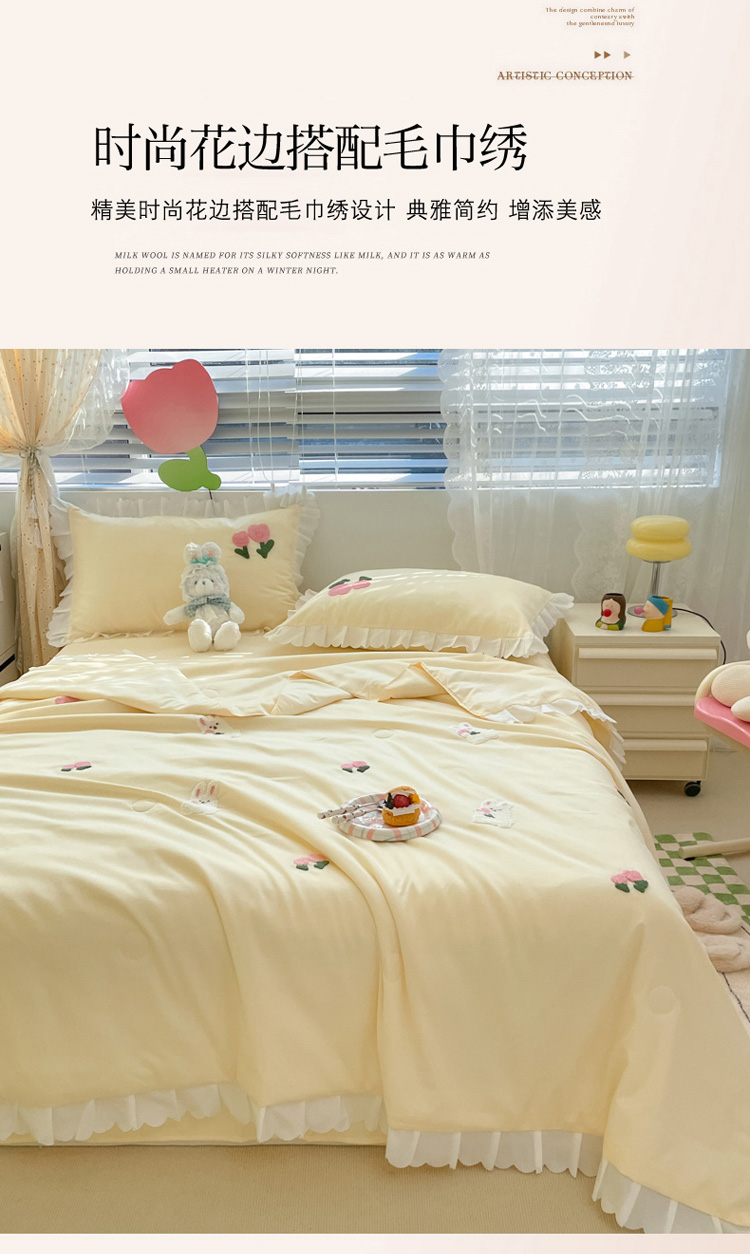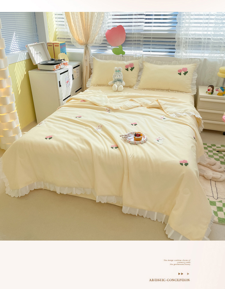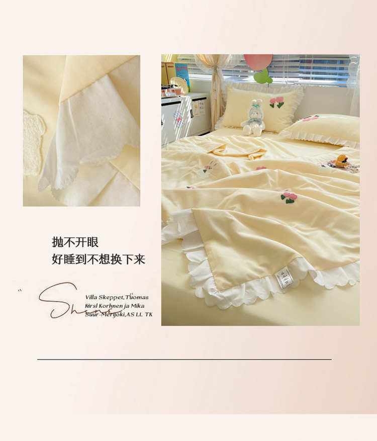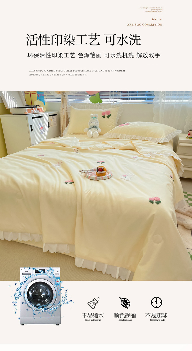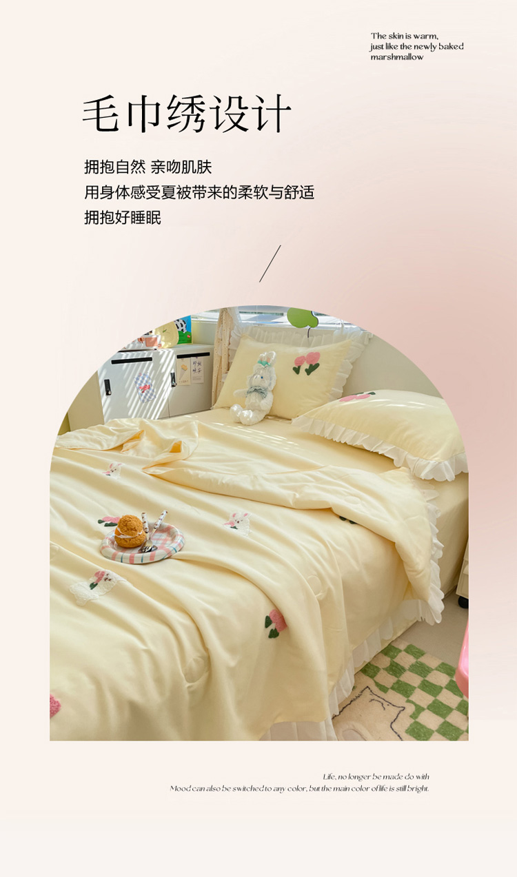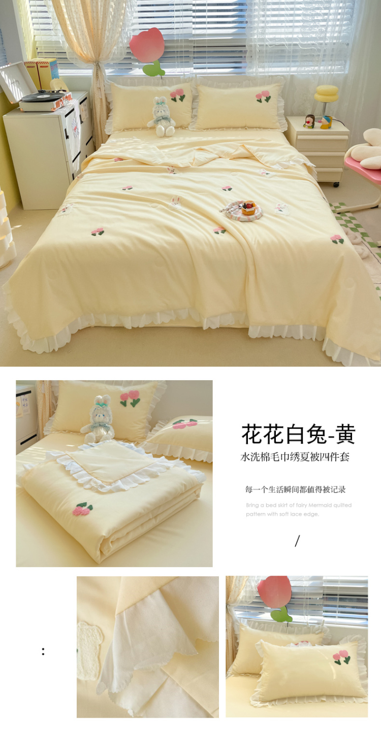 商品名称:2023新款夏被四件套 花花白兔-黄