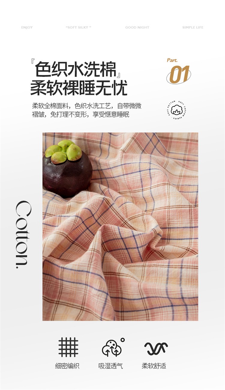 当前位置: 91家纺网 > 商品网购 > 床品套件 > 四件套 > 水洗棉四件套 > 九沐良品 新款A类色织水洗棉四件套 凯利咖