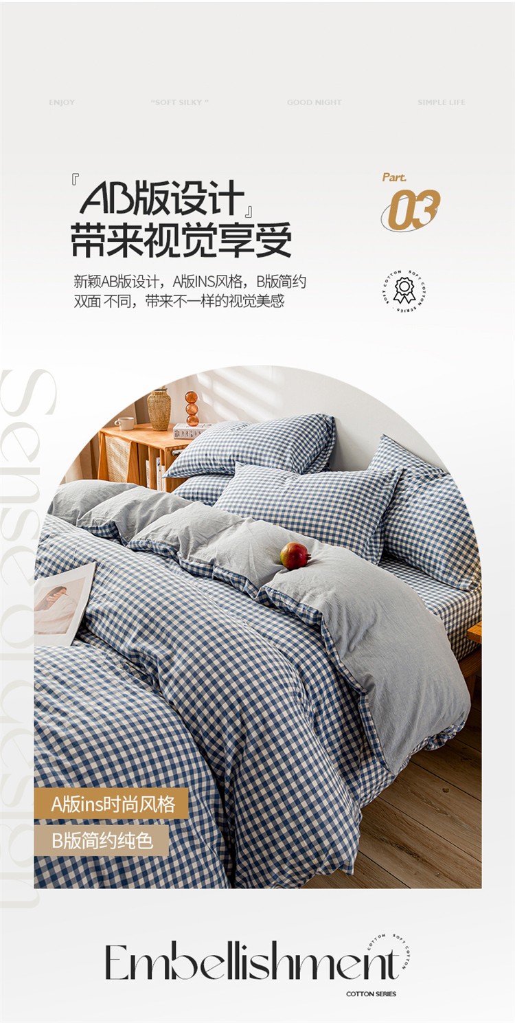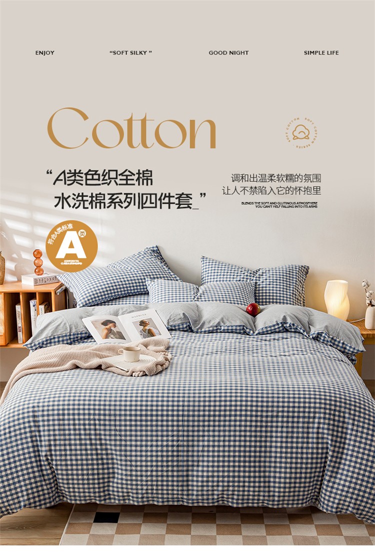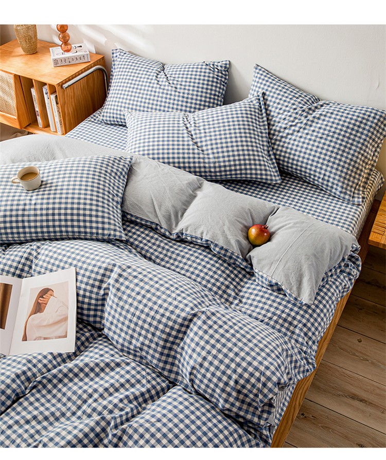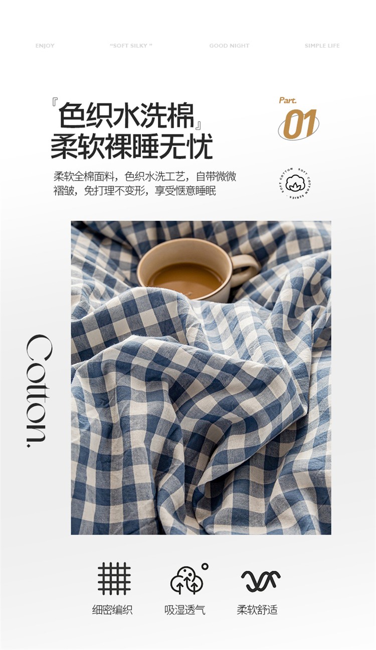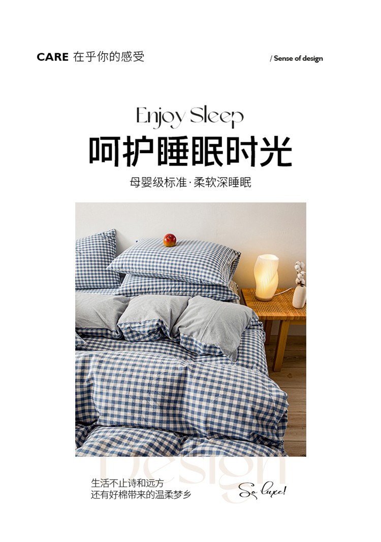 当前位置: 91家纺网 > 商品网购 > 床品套件 > 四件套 > 水洗棉四件套 > 九沐良品 新款A类色织水洗棉四件套 浅蓝小格