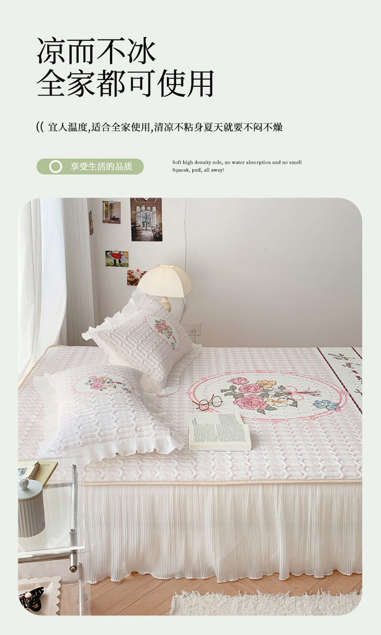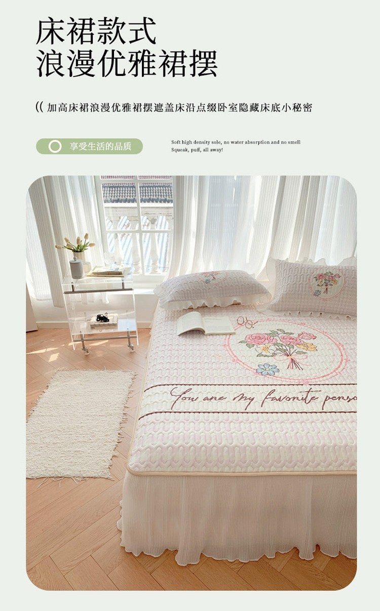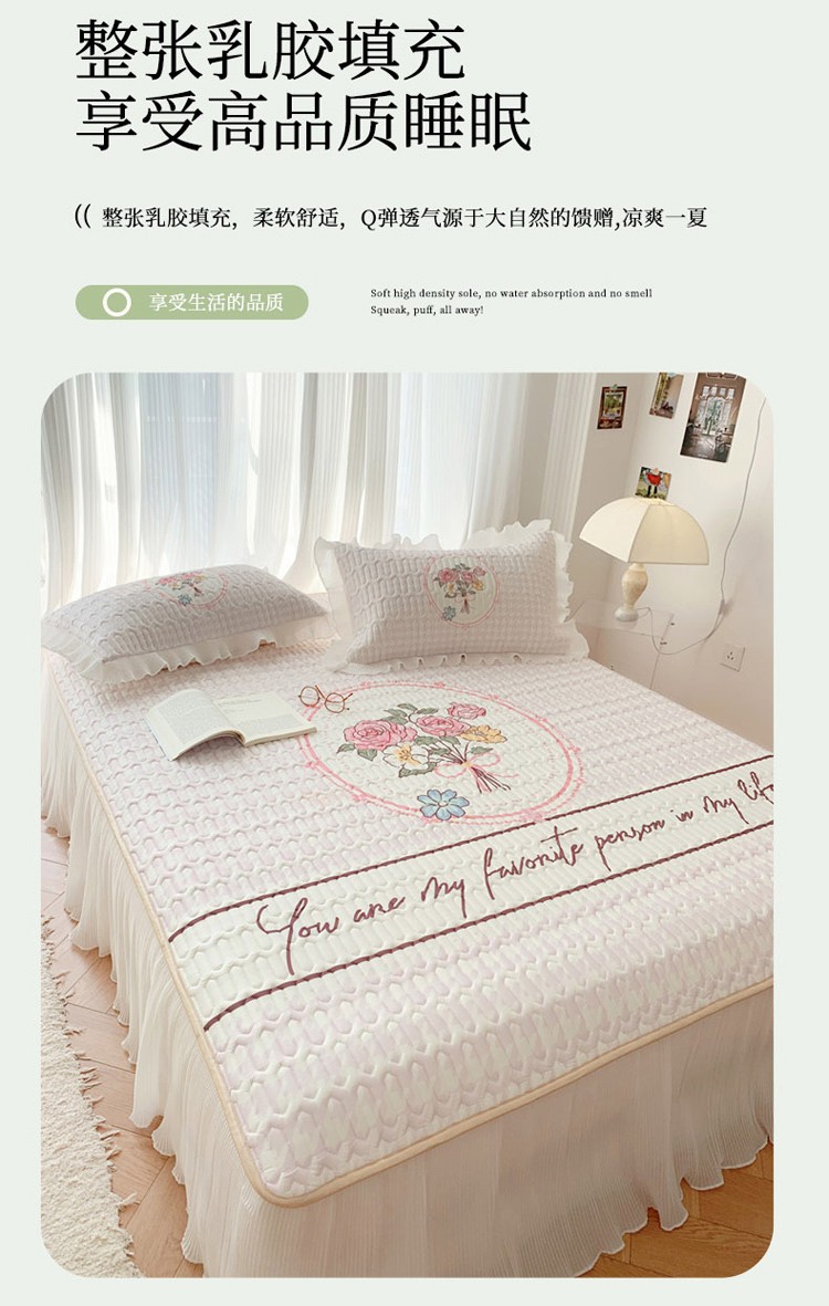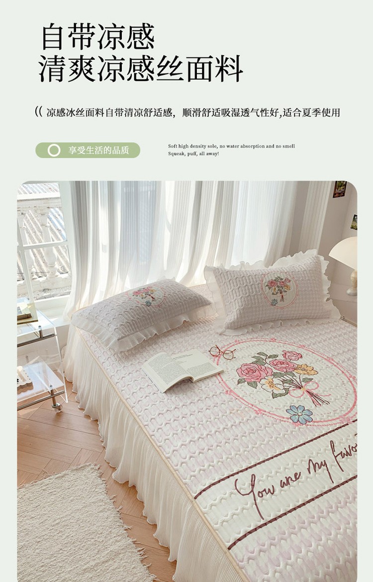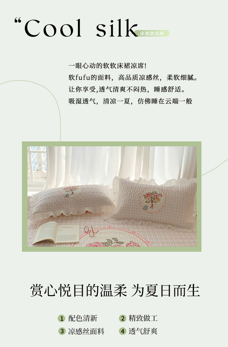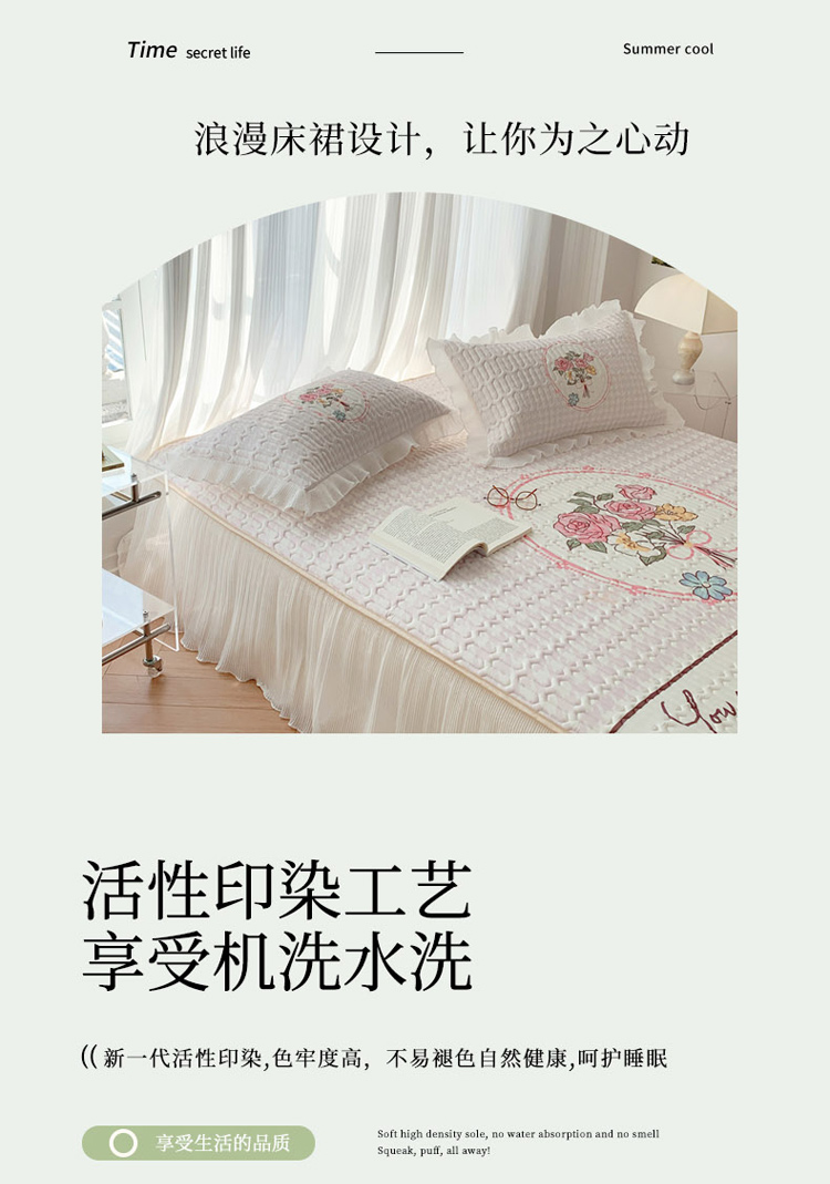 商品名称:慕澄 2023新款大版雪纺床裙款乳胶凉席系列 床裙款-花季