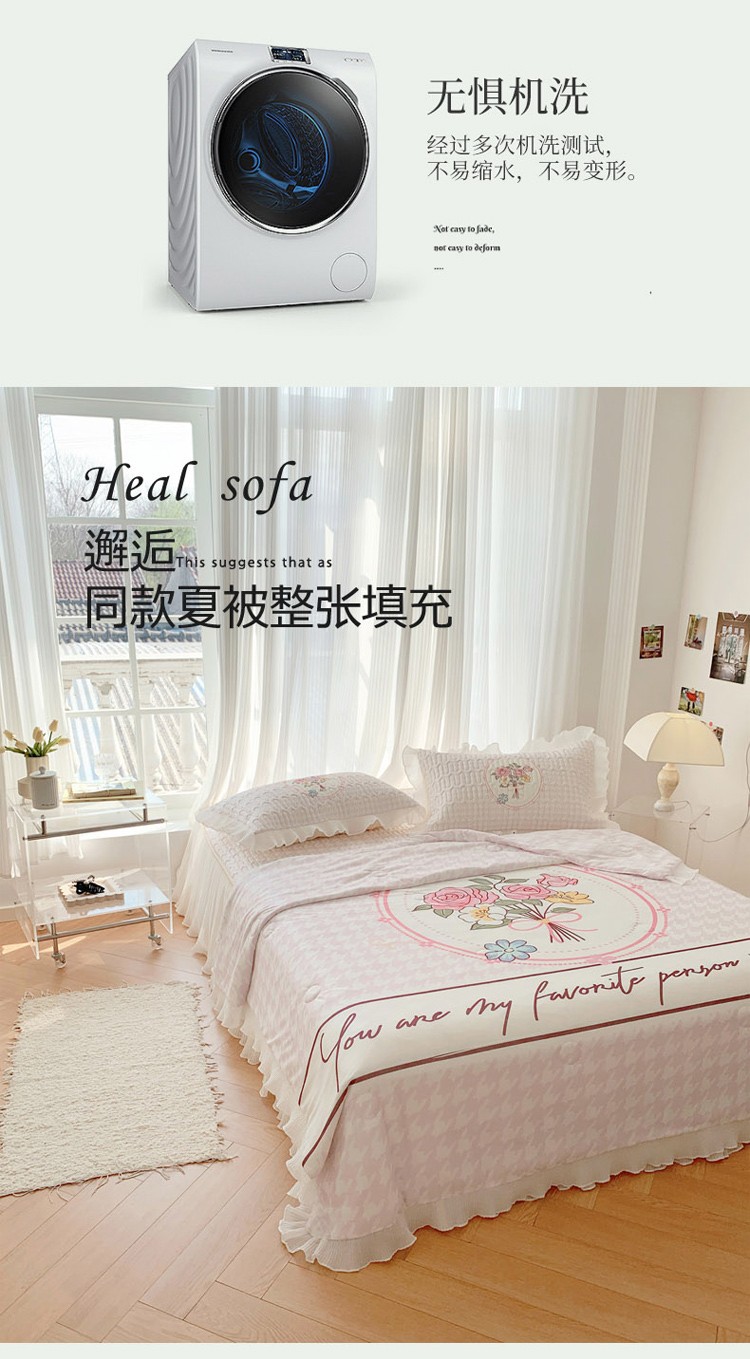 慕澄家纺 2024新款时尚印花泡泡棉花边夏被夏凉被空调被 夏被-心语,夏被-心语