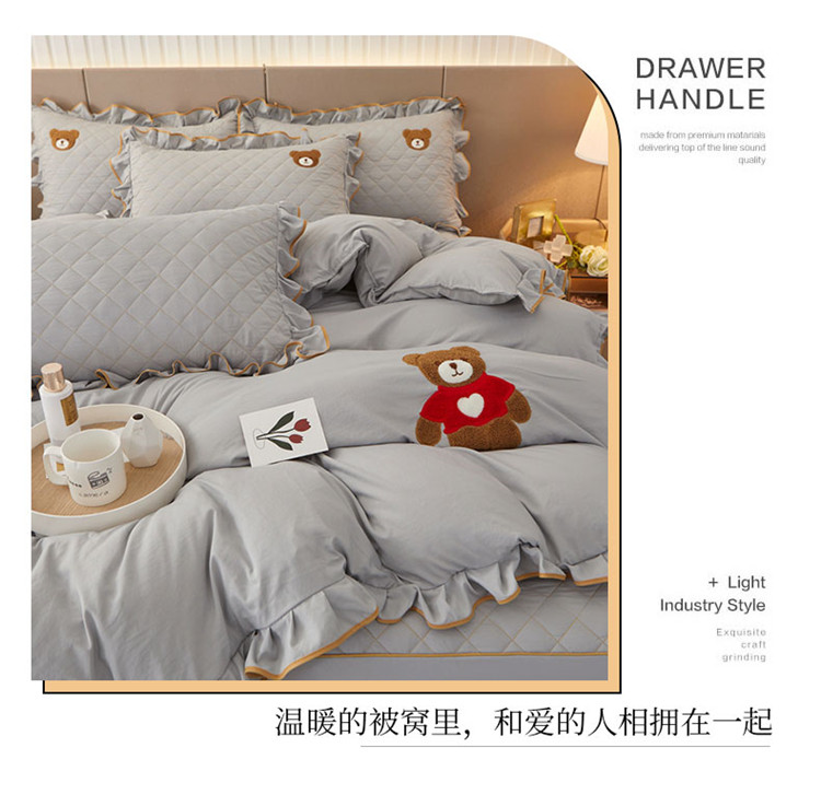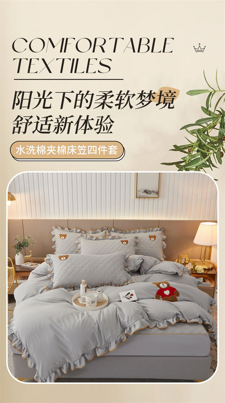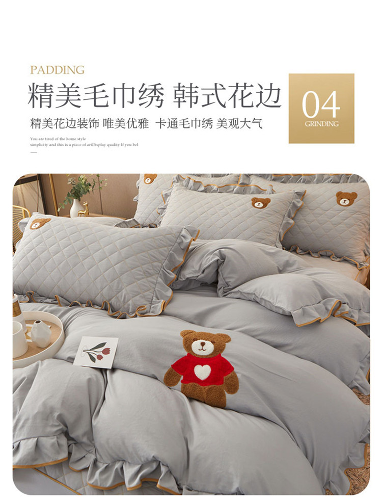 当前位置: 91家纺网 > 商品网购 > 床品套件 > 四件套 > 水洗棉四件套 > 屹成家纺 2024年水洗棉毛巾绣款床笠四件套 银灰