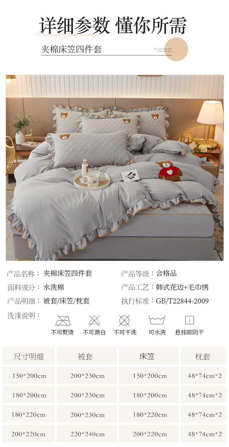 床笠180*200cm 被套220*240cm 枕套一对 | ¥150.00 |