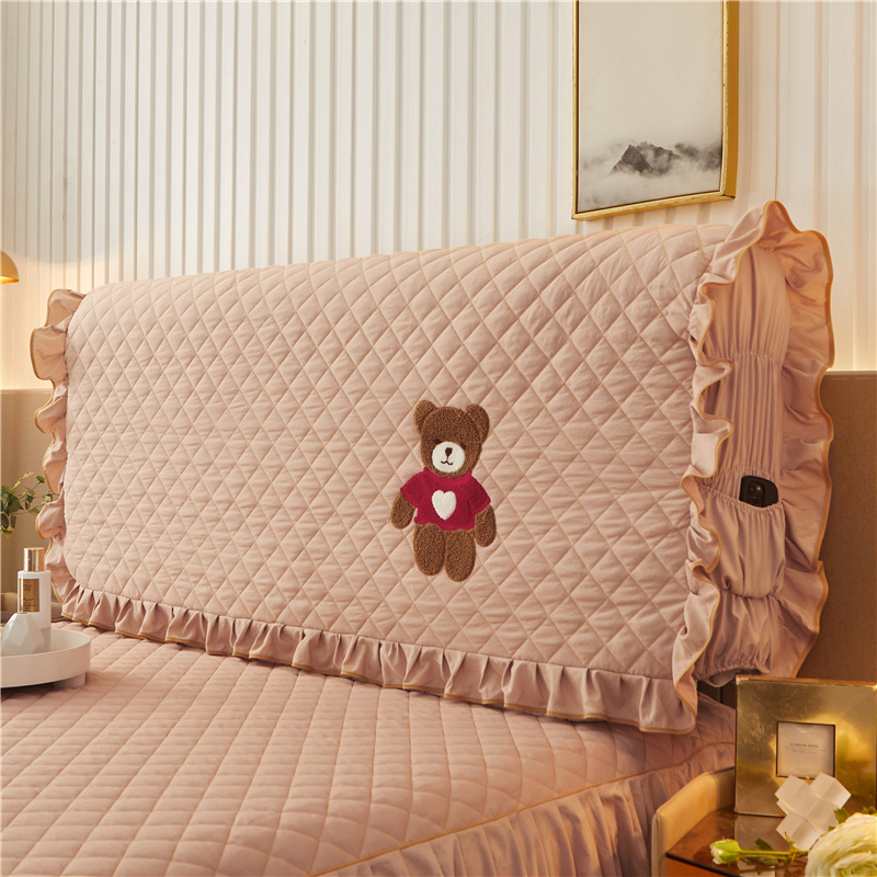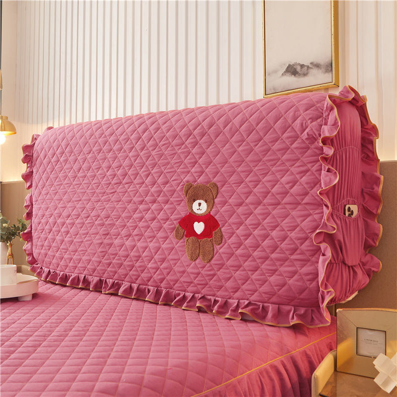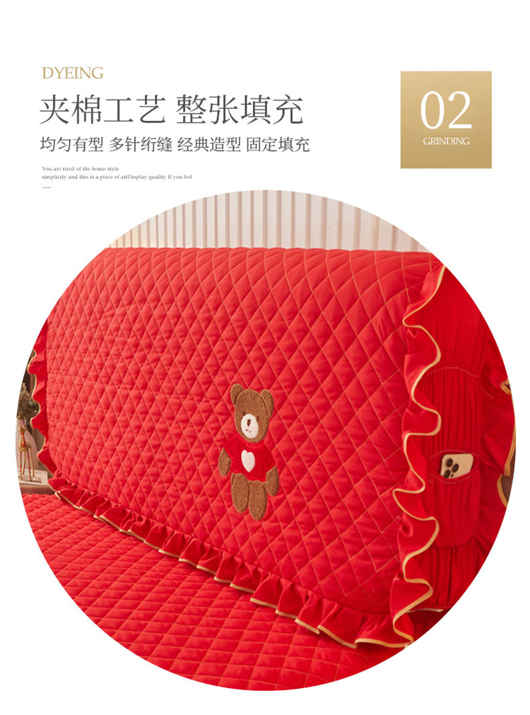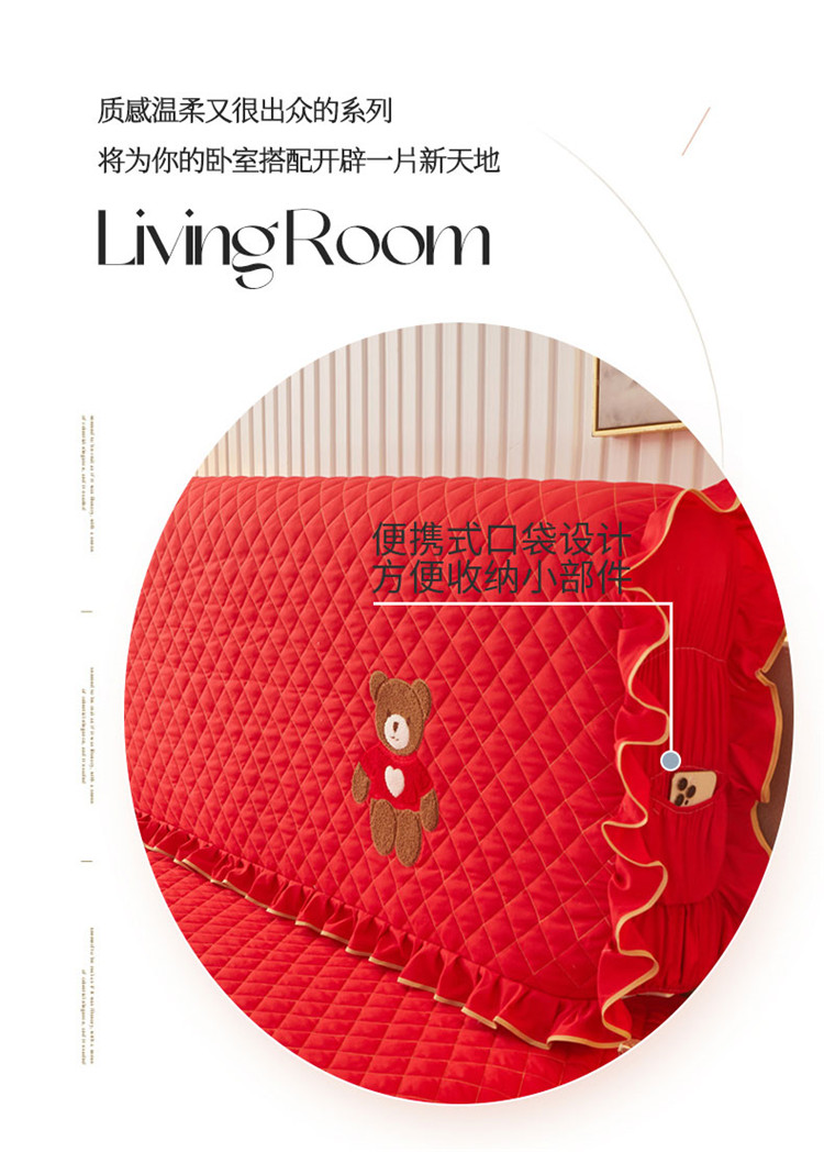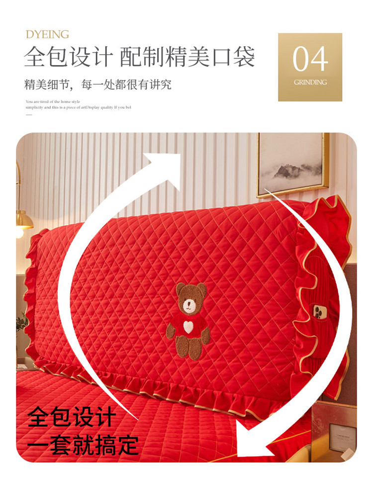 (总)屹成家纺2025新款水晶绒夹棉绗缝蕾丝床裙三件套(塞纳河畔)床裙单件起售价不低于105元,大红,豆沙,翡翠绿,粉玉,橄榄绿,蔚蓝,银灰