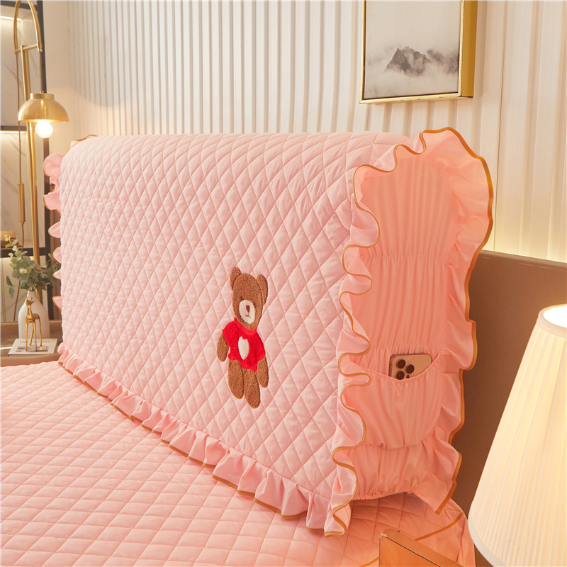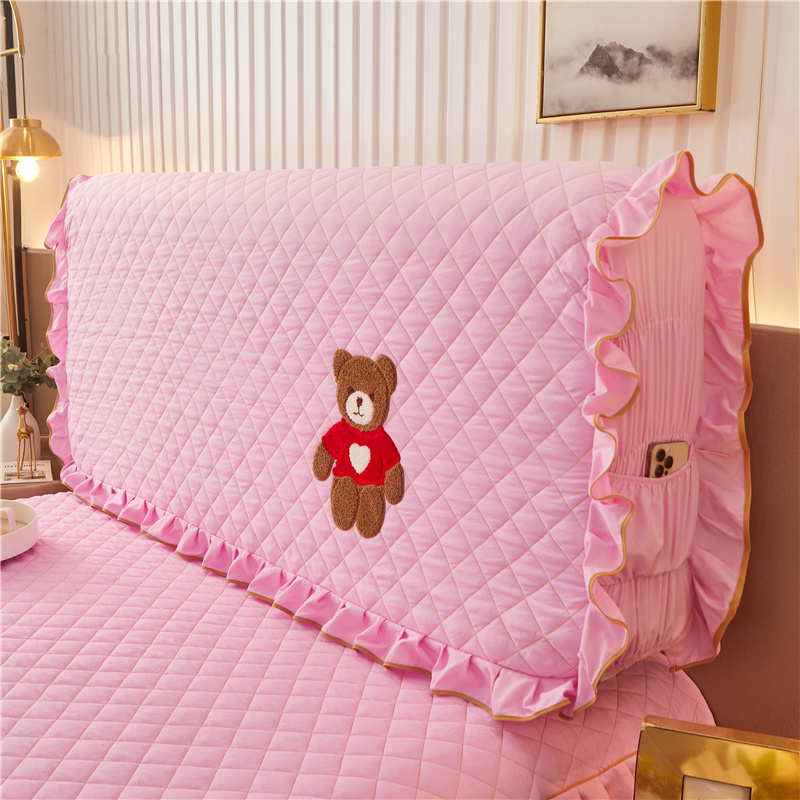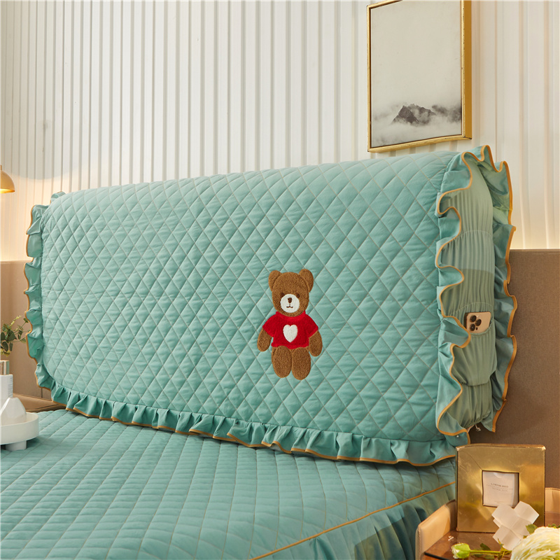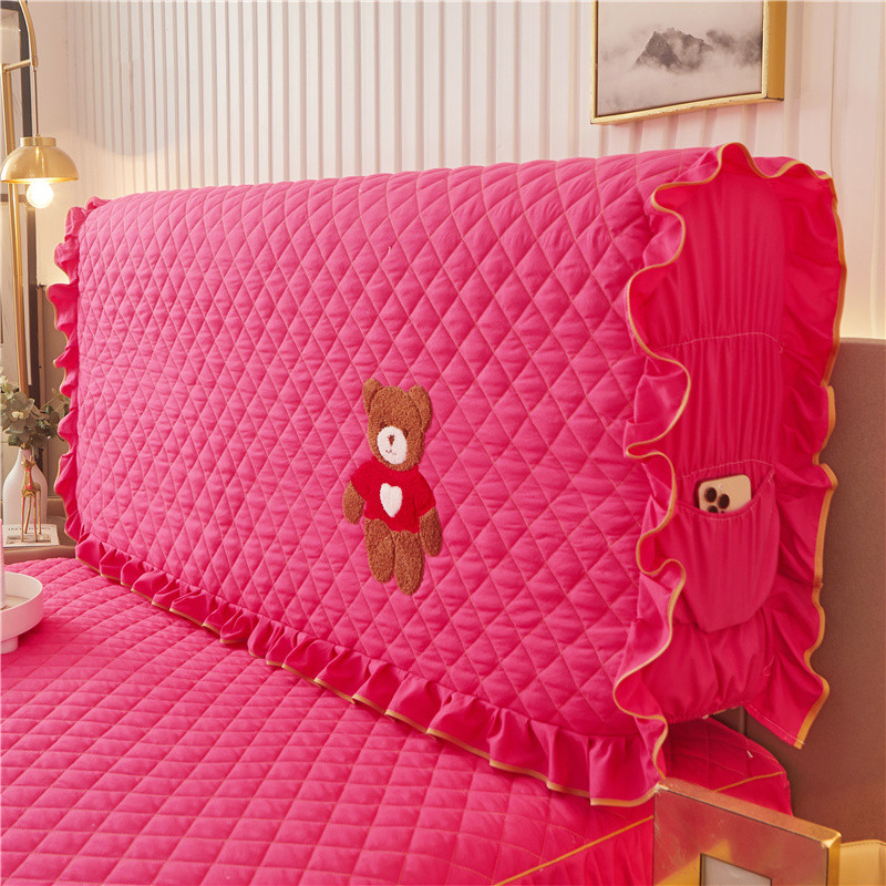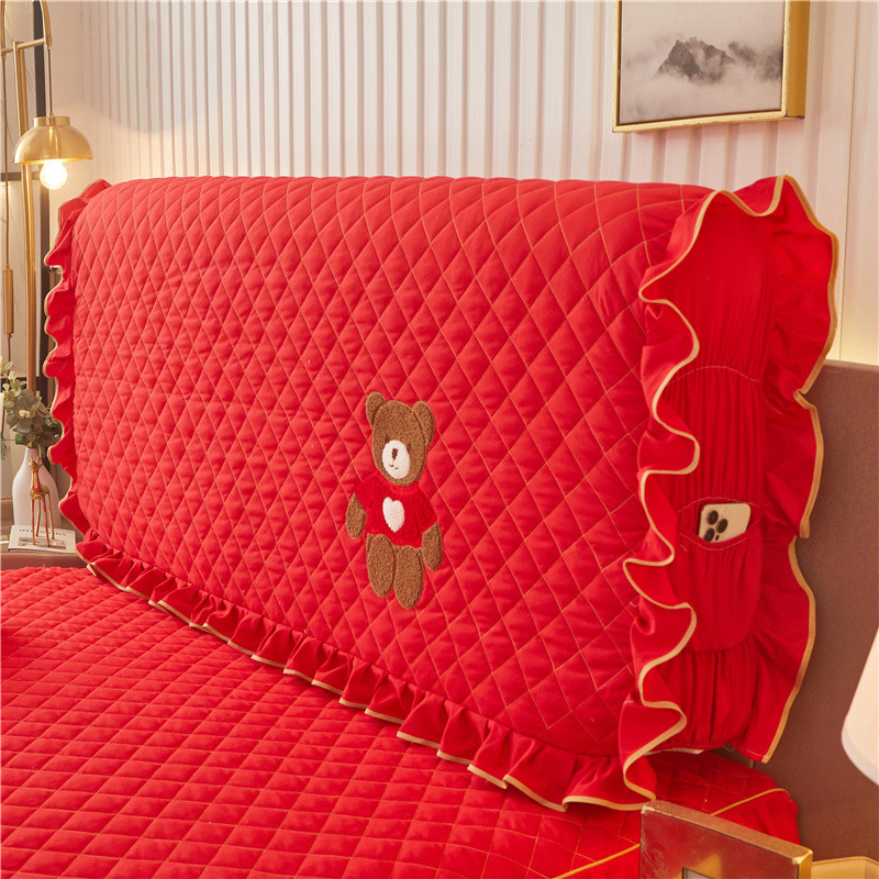(总)屹成家纺2025新款水晶绒夹棉绗缝蕾丝床裙三件套(塞纳河畔)床裙单件起售价不低于105元,大红,豆沙,翡翠绿,粉玉,橄榄绿,蔚蓝,银灰
