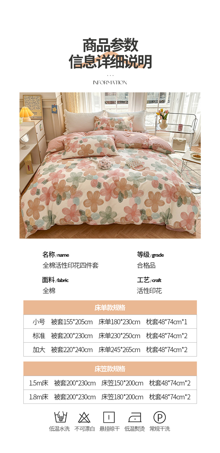 当前位置: 91家纺网 > 商品网购 > 床品套件 > 四件套 > 全棉普通四件套 > 清雅福 2023新款全棉小清新四件套 七色瑾