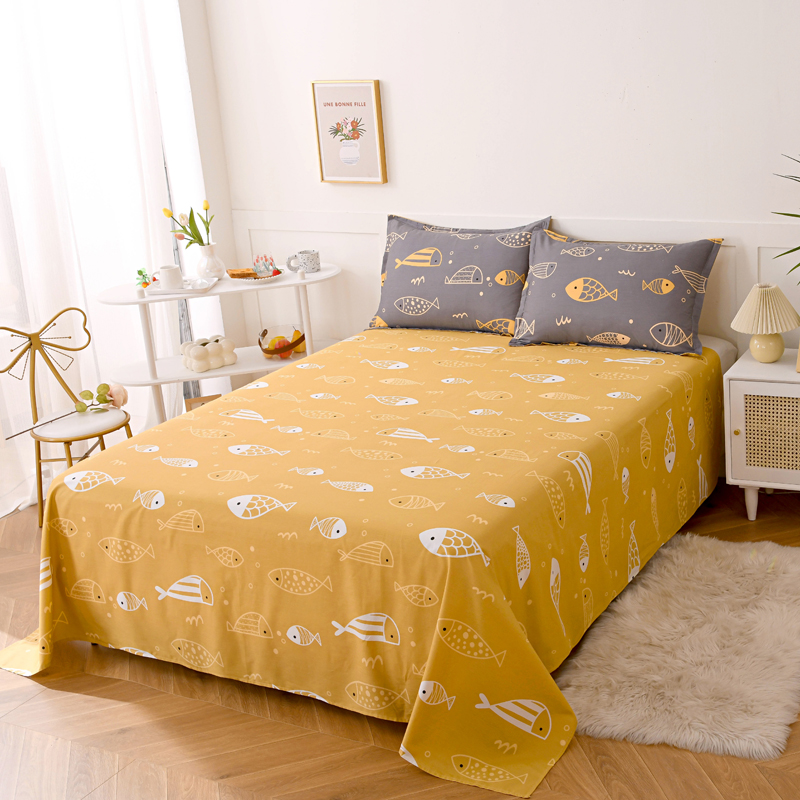 商品名称:茗婷2025春夏新款纯棉印花单品床单 自由鱼趣灰