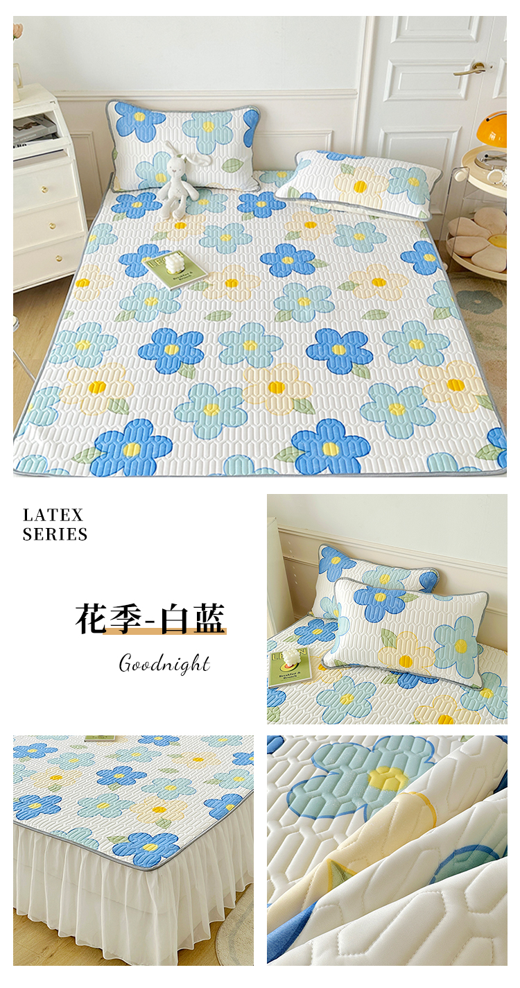 当前位置: 91家纺网 > 商品网购 > 床上用品 > 凉席 > 乳胶凉席 > 纽缦 2023新款乳胶床裙三件套 花季-白蓝