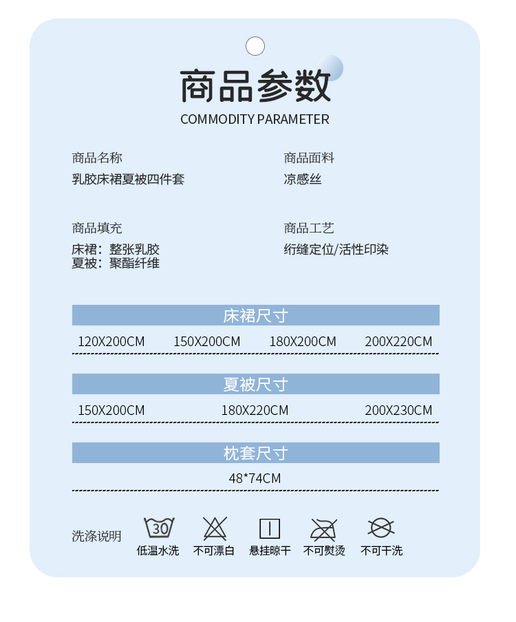 1.5*2.0四件套(配1.8*2.2夏被枕套一对) | ¥115.00 |