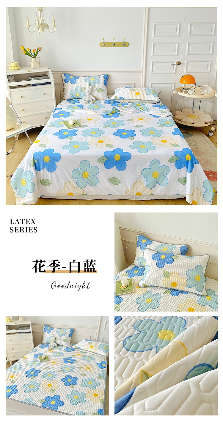 当前位置: 91家纺网 > 商品网购 > 床品套件 > 四件套 > 夏被四件套 > 纽缦 2023新款乳胶床单四件套 花季-白蓝